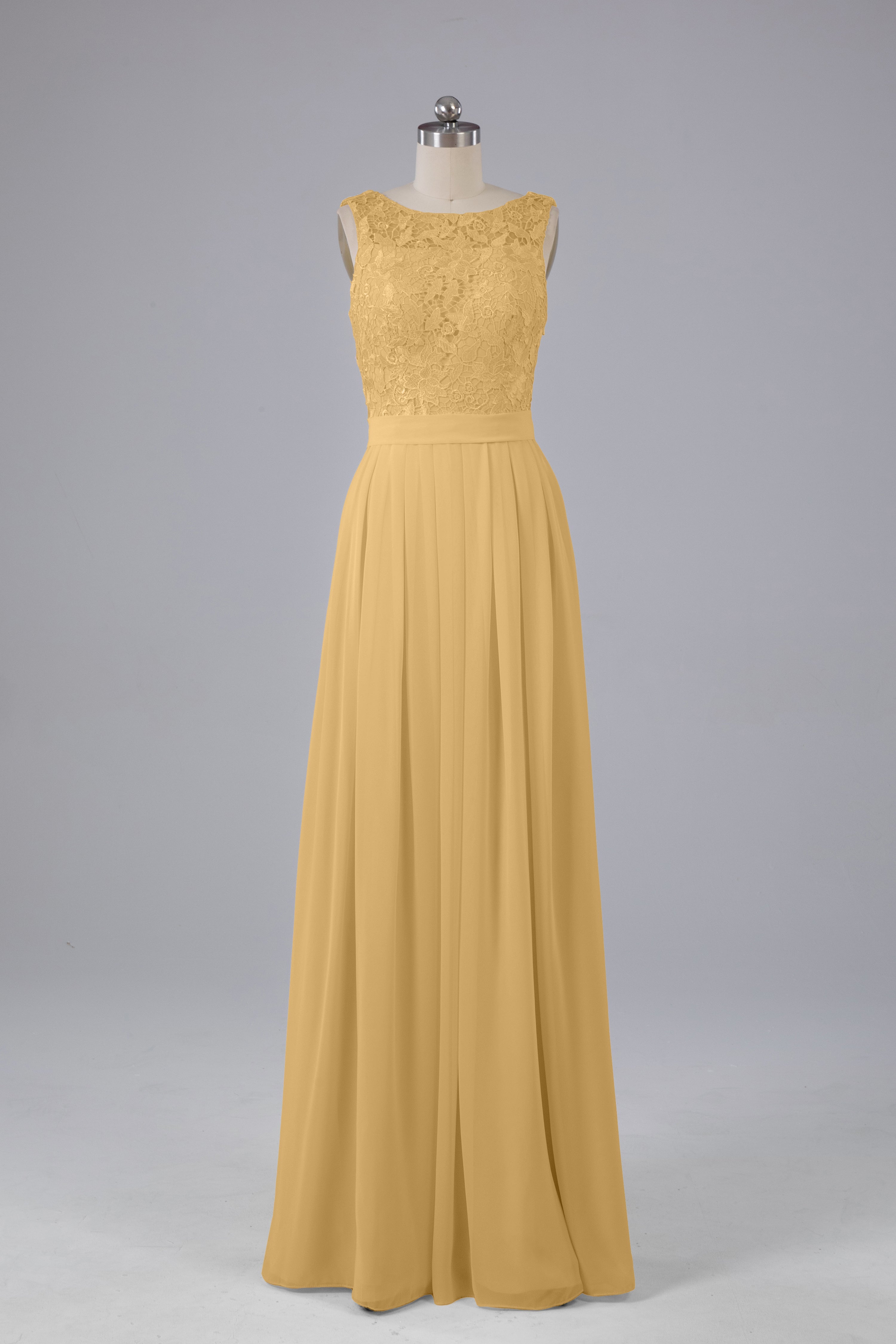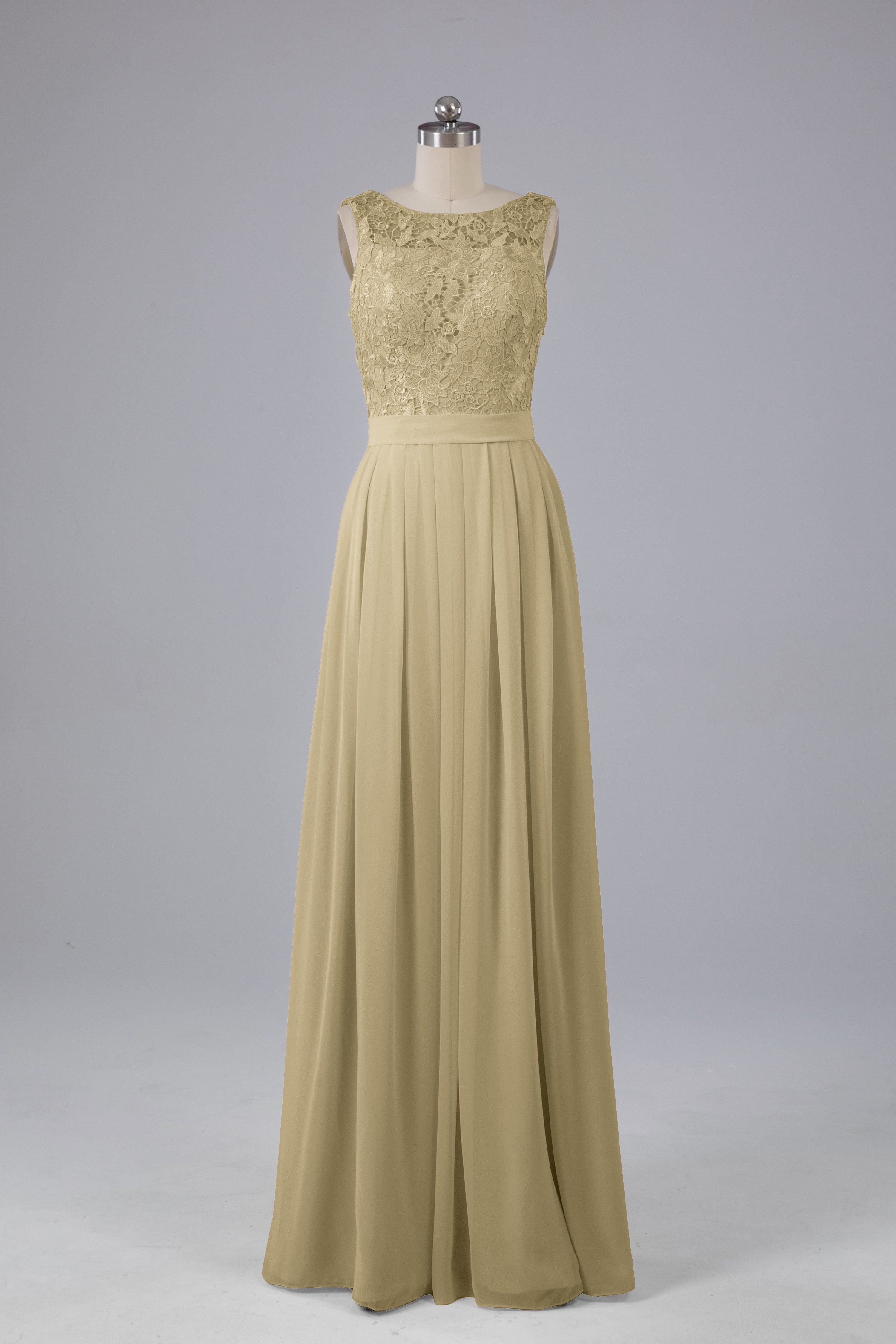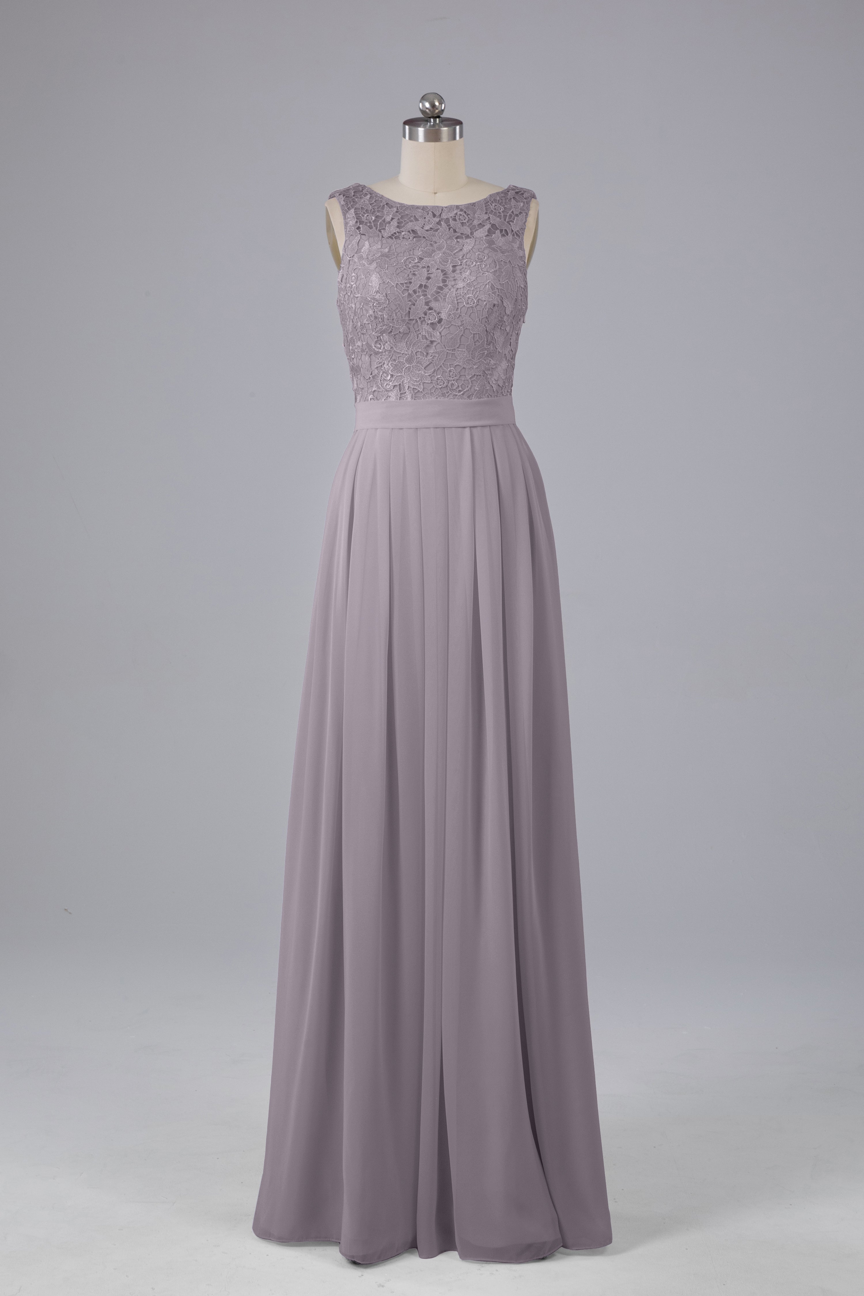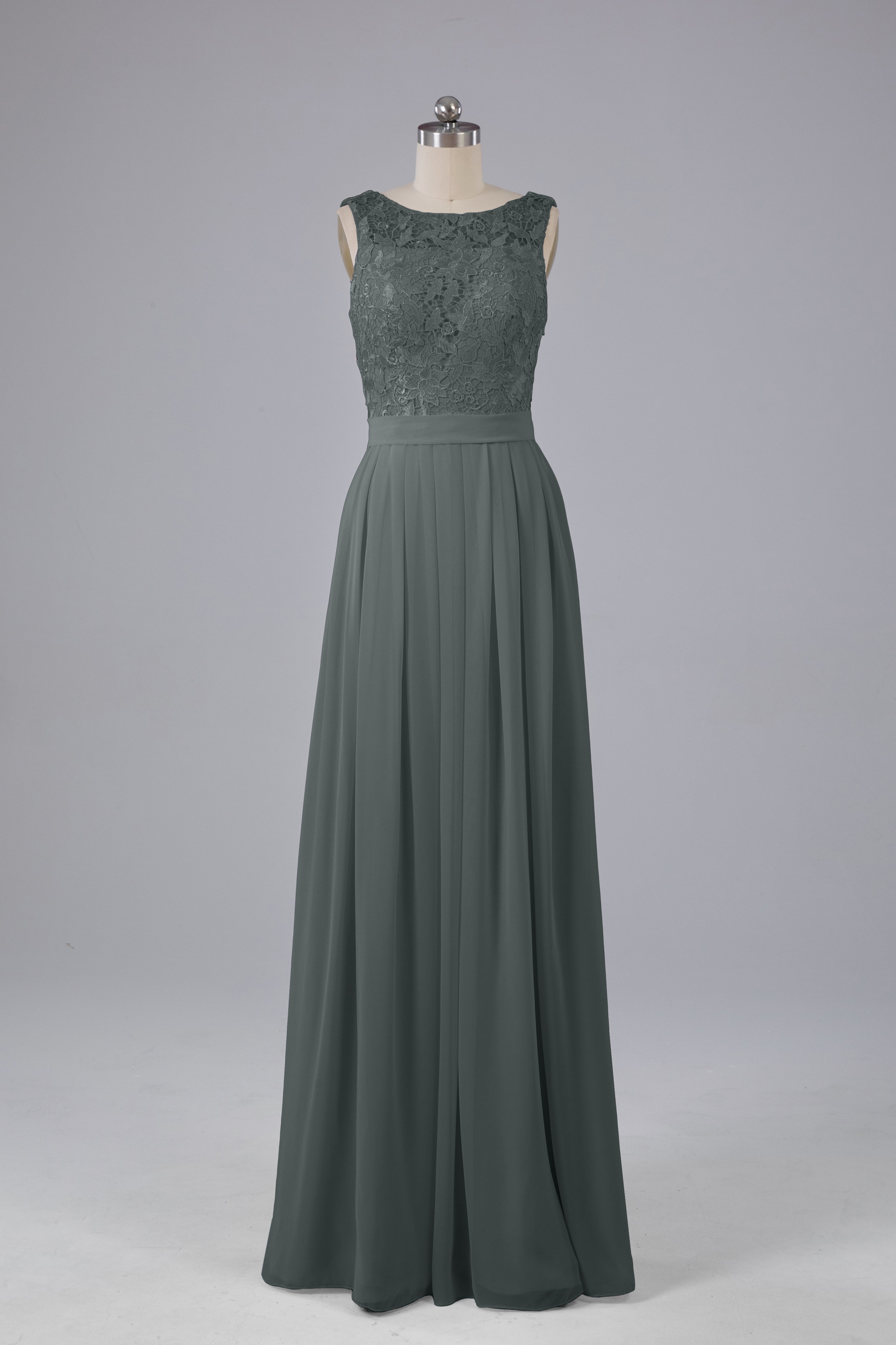 A-line Lace Top Floor Length Chiffon Bridesmaid Dresses