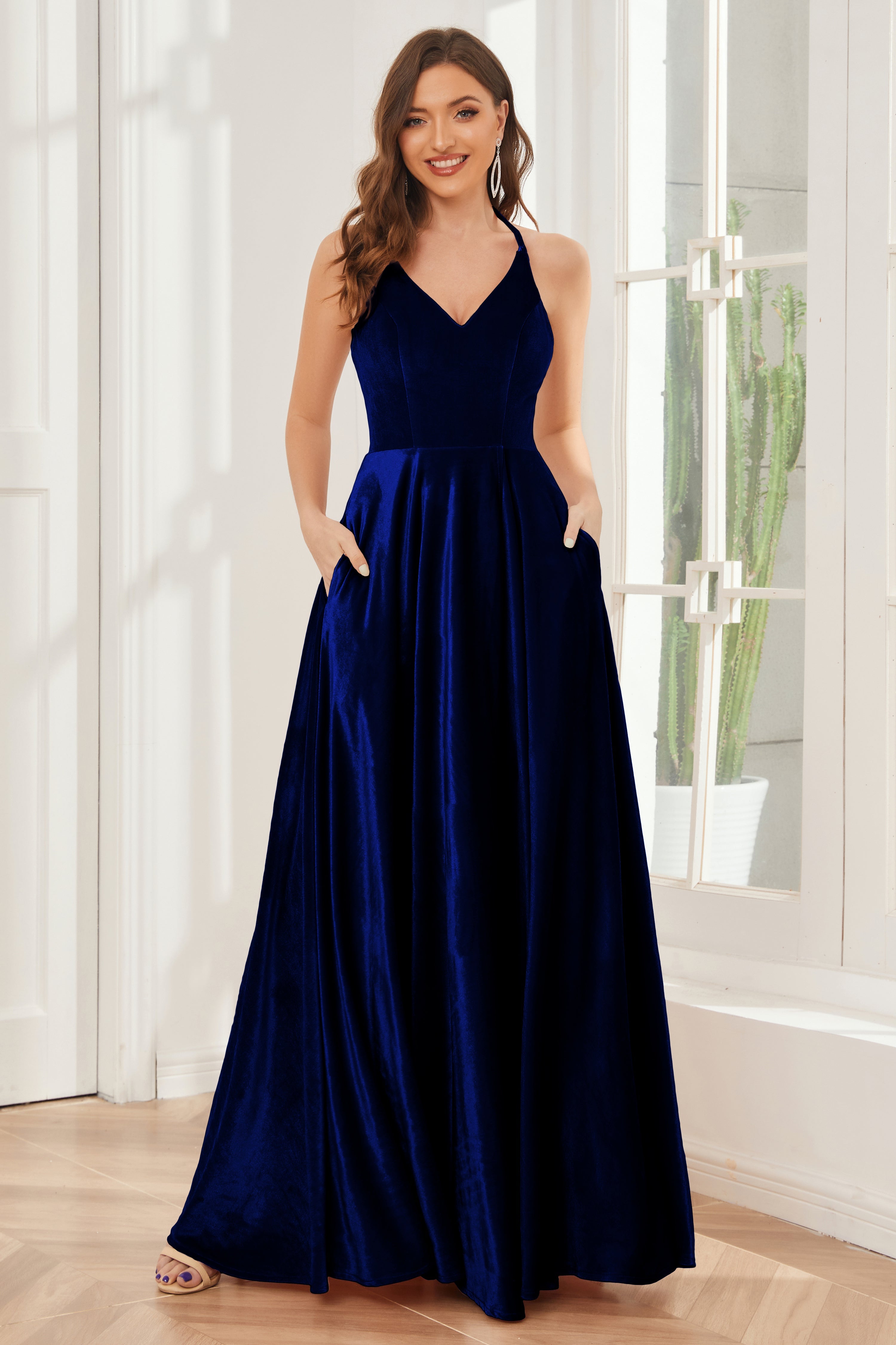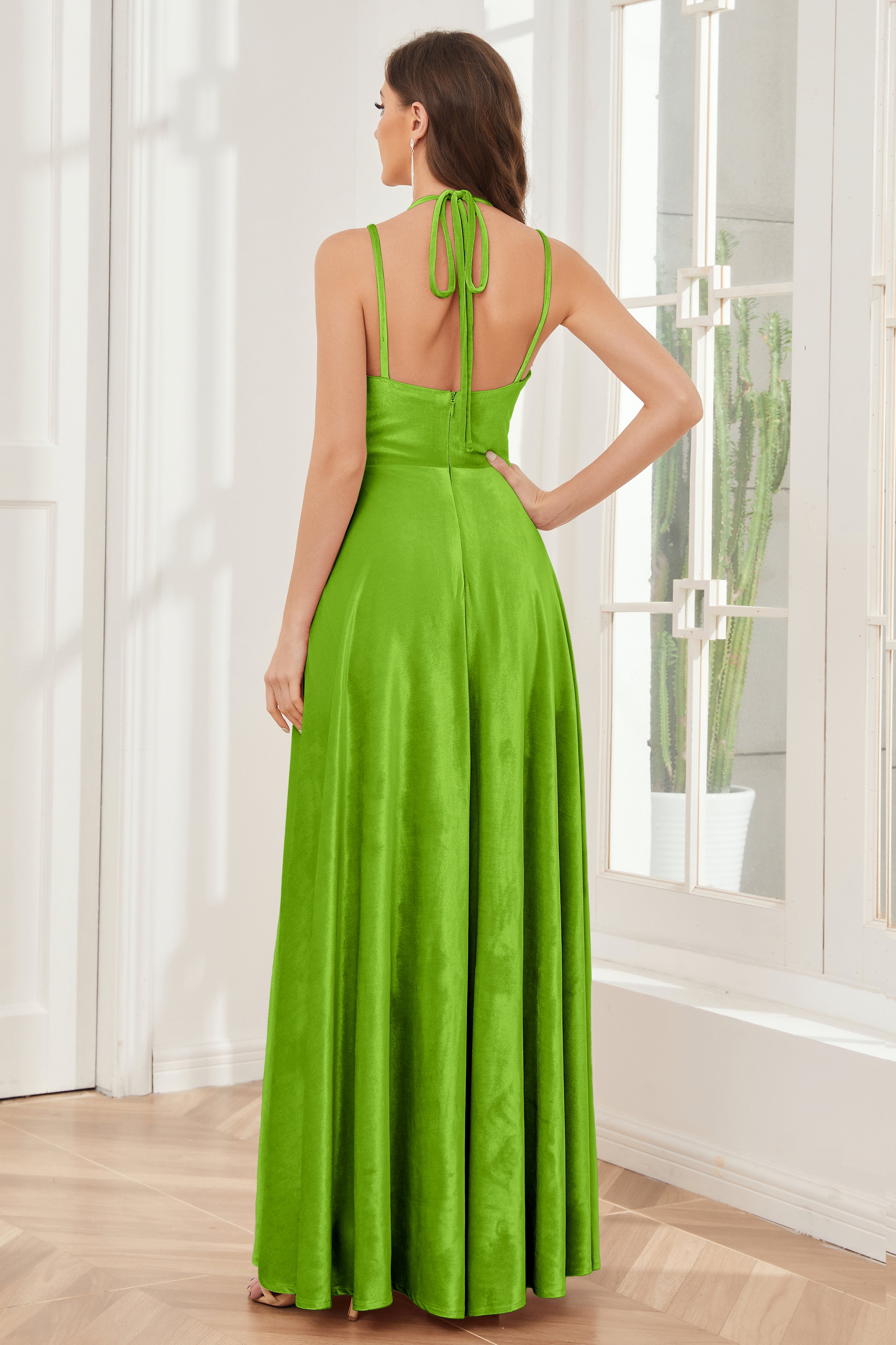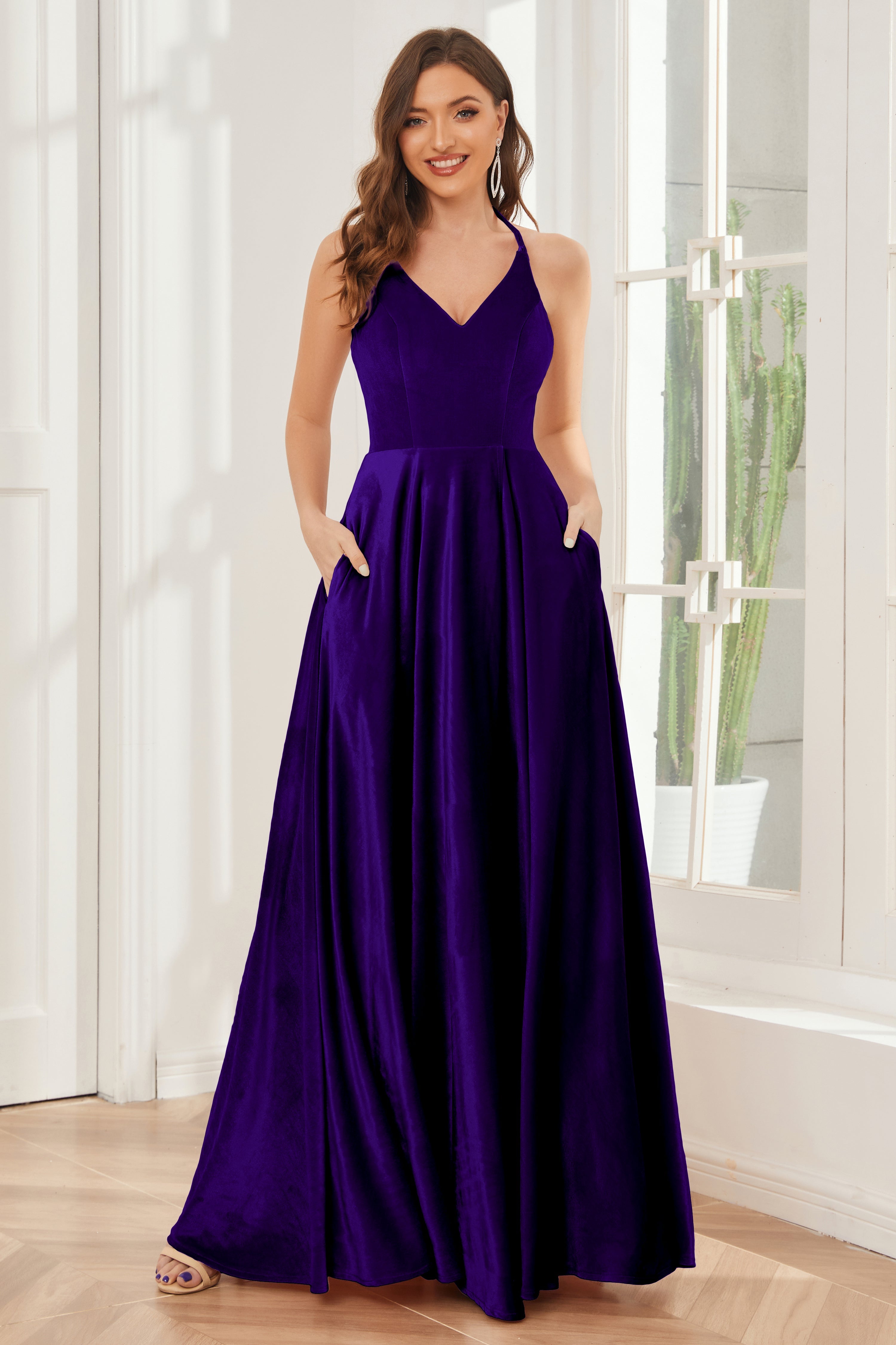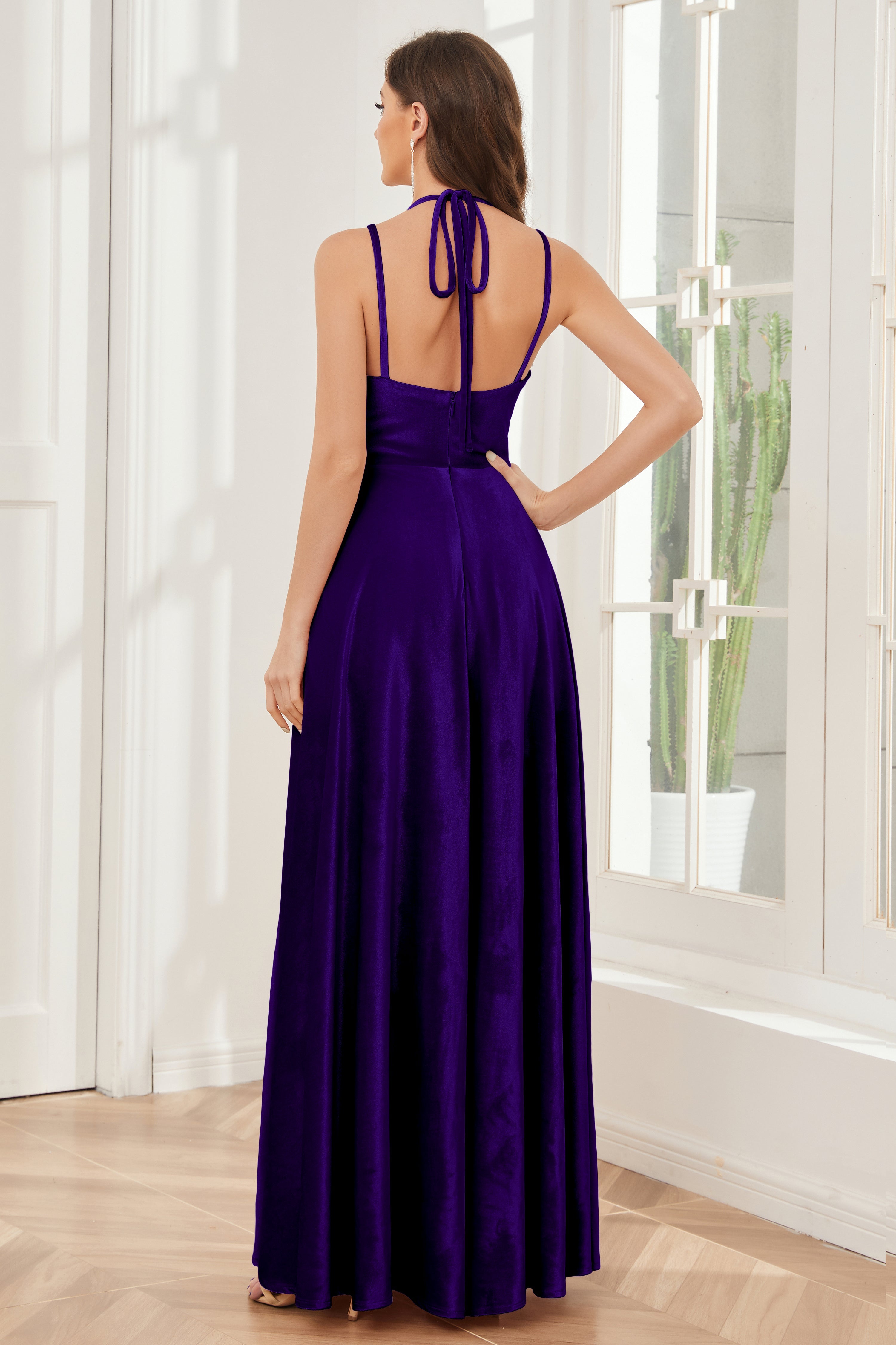 A-line Straps Velvet Bridesmaid Dresses with Slit