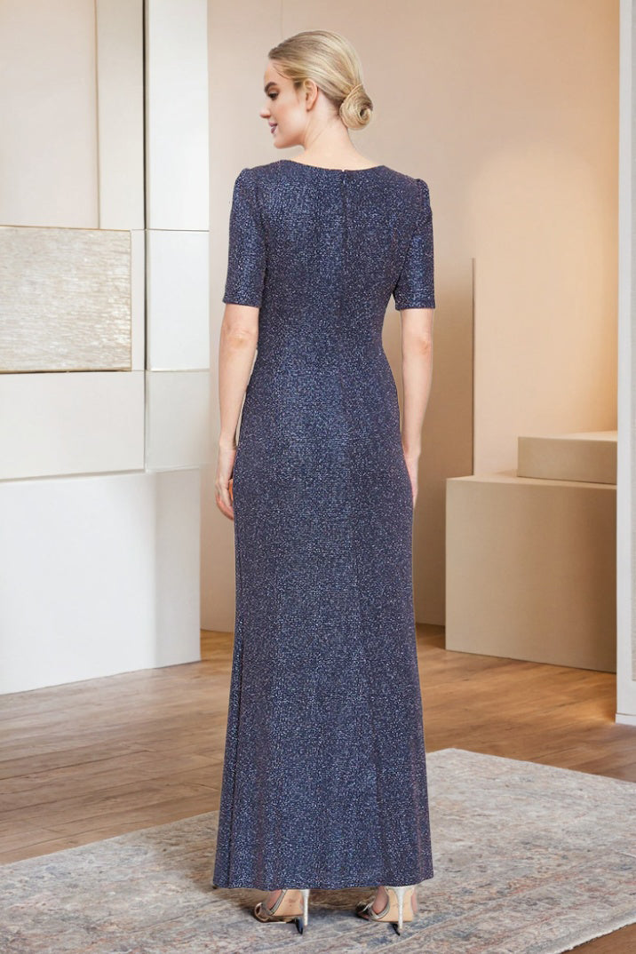 Introducing our Sheath V Neck Shiny Short Sleeve Ankle Length Wedding Party Dress. This elegant and glamorous dress features a sleek sheath silhouette that flatters all body types, while the v-neckline and shiny fabric add a touch of sophistication. The short sleeves provide coverage without sacrificing style, making it the perfect choice for any wedding party. Walk down the aisle in style with this ankle-length dress that will surely make you shine.