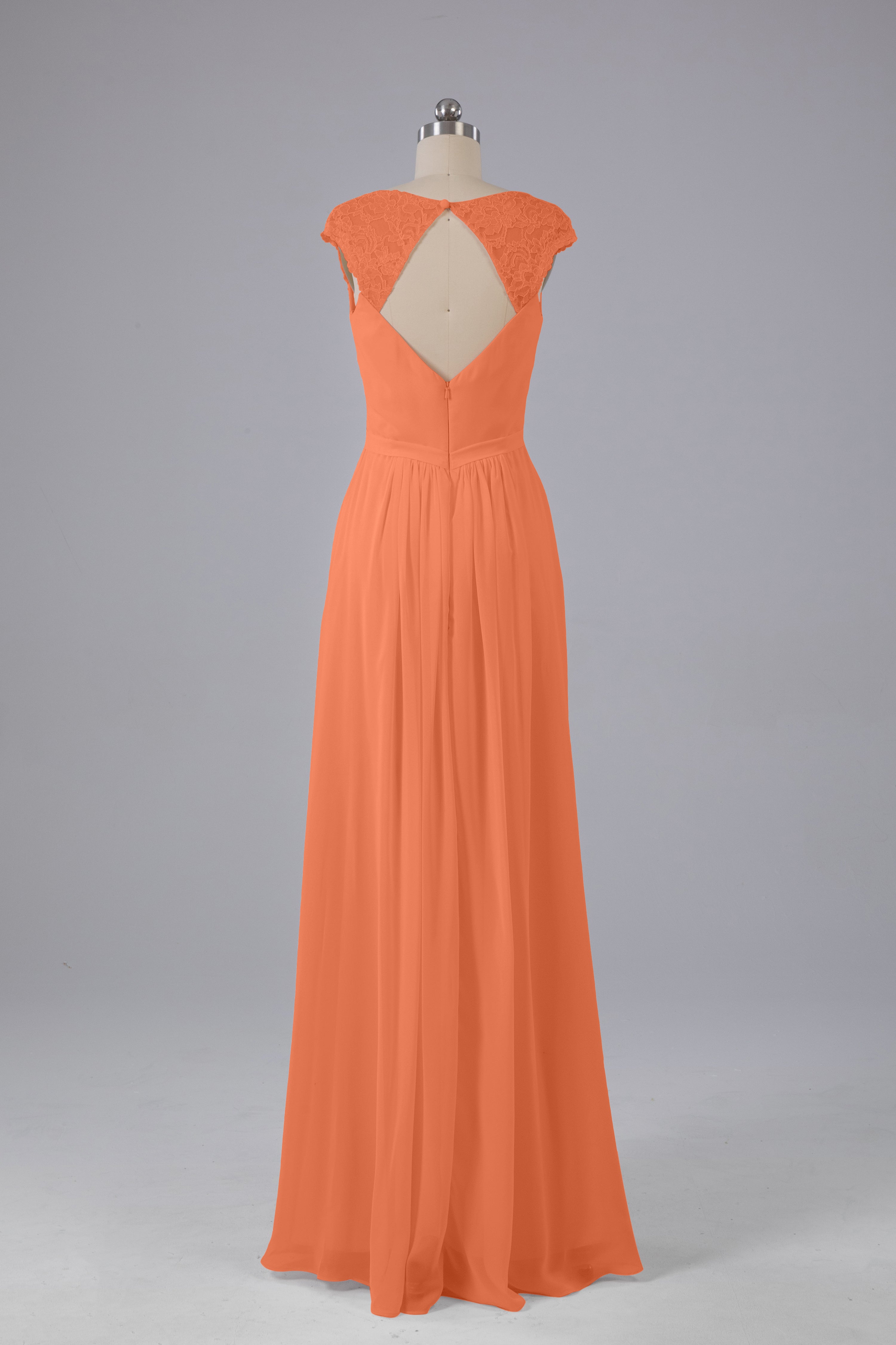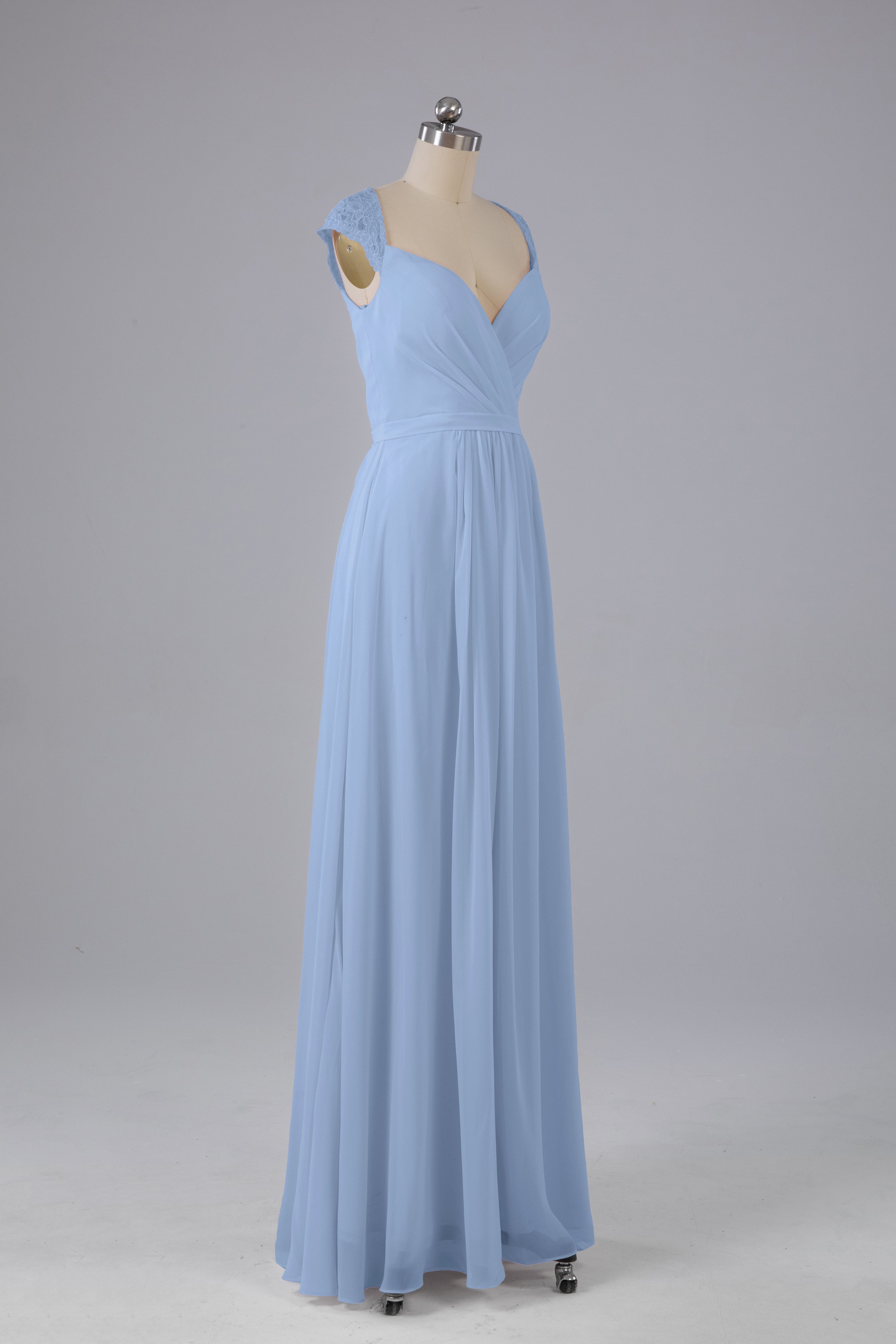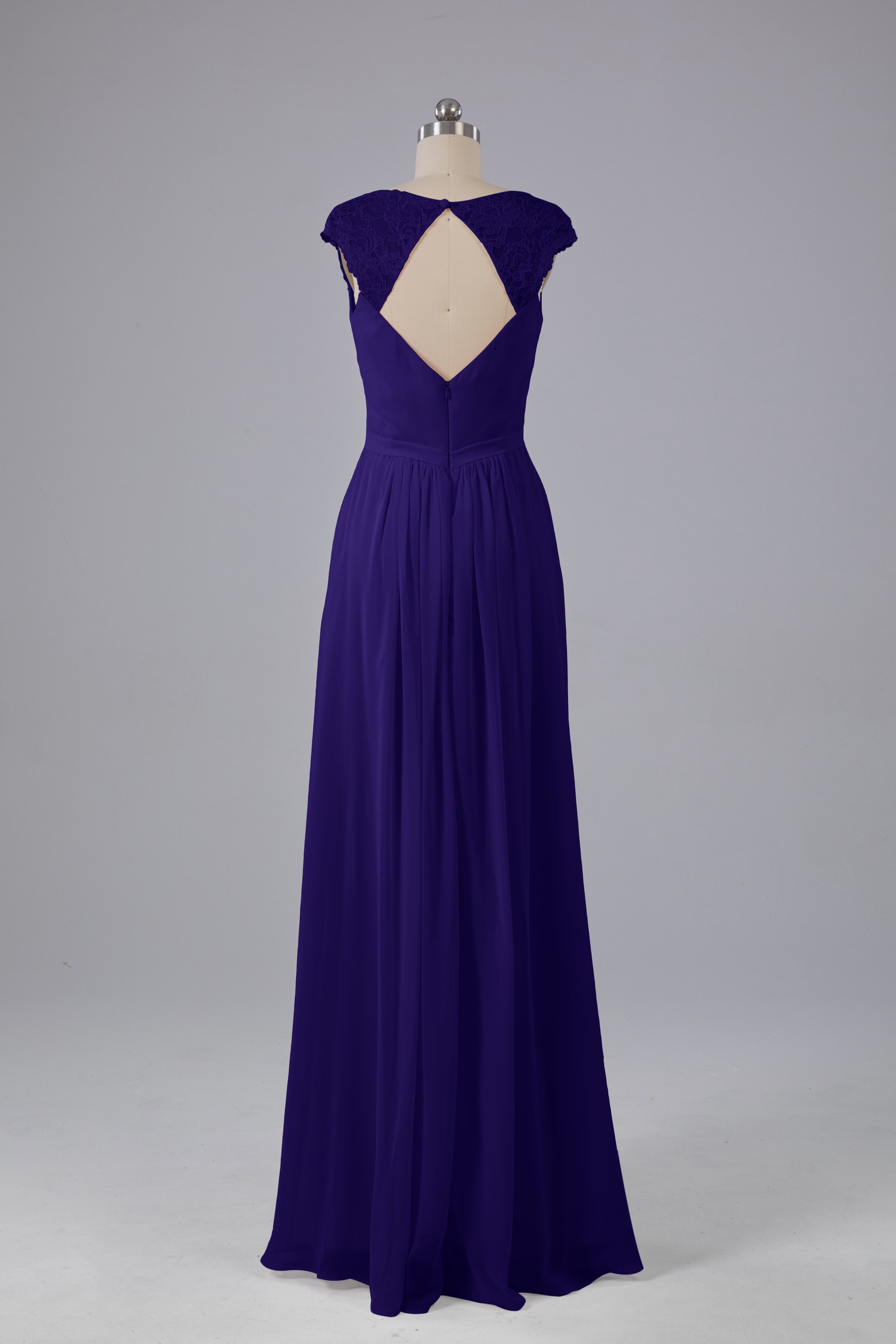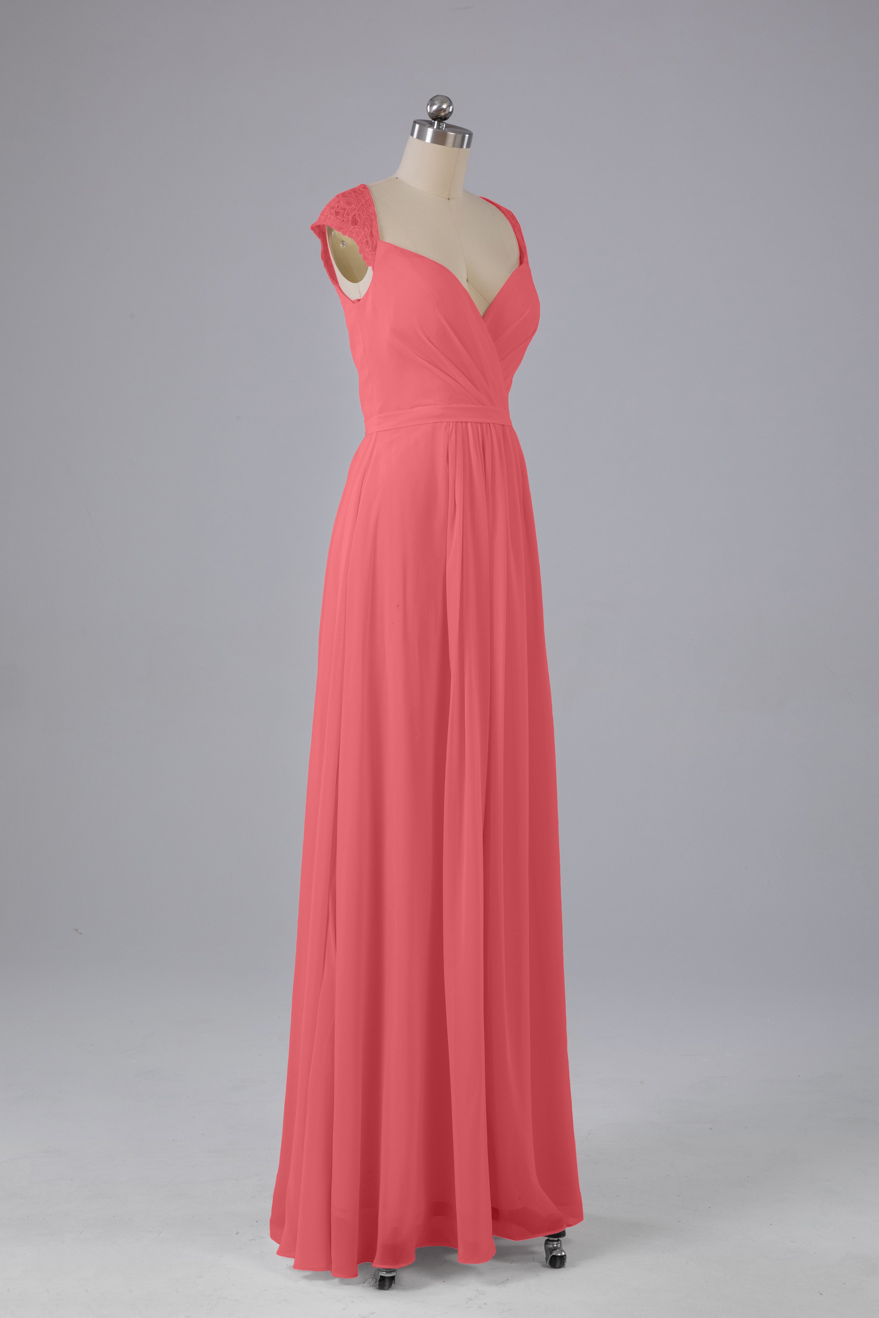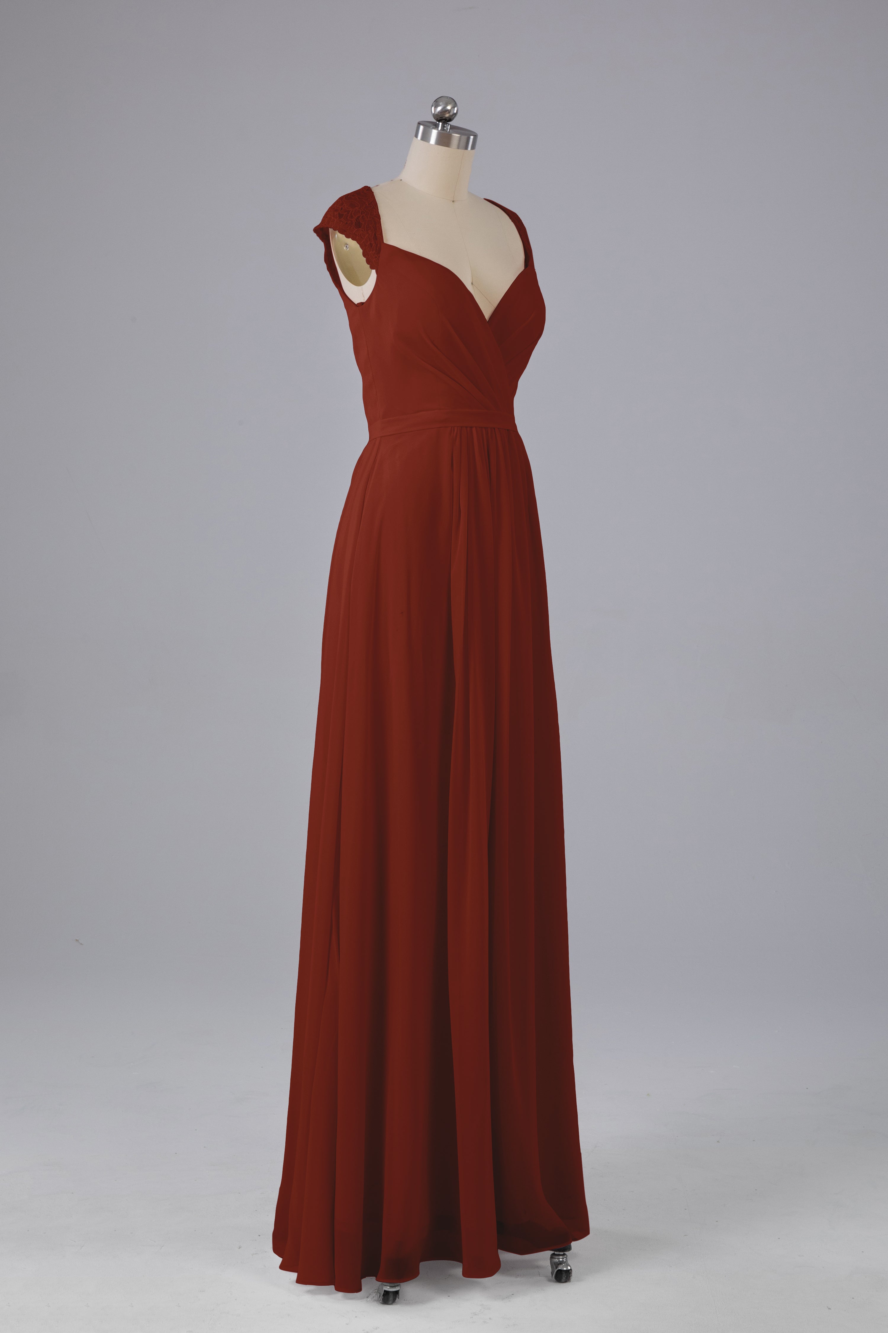 Simple Cap Sleeves Chiffon Floor Length Bridesmaid Dresses