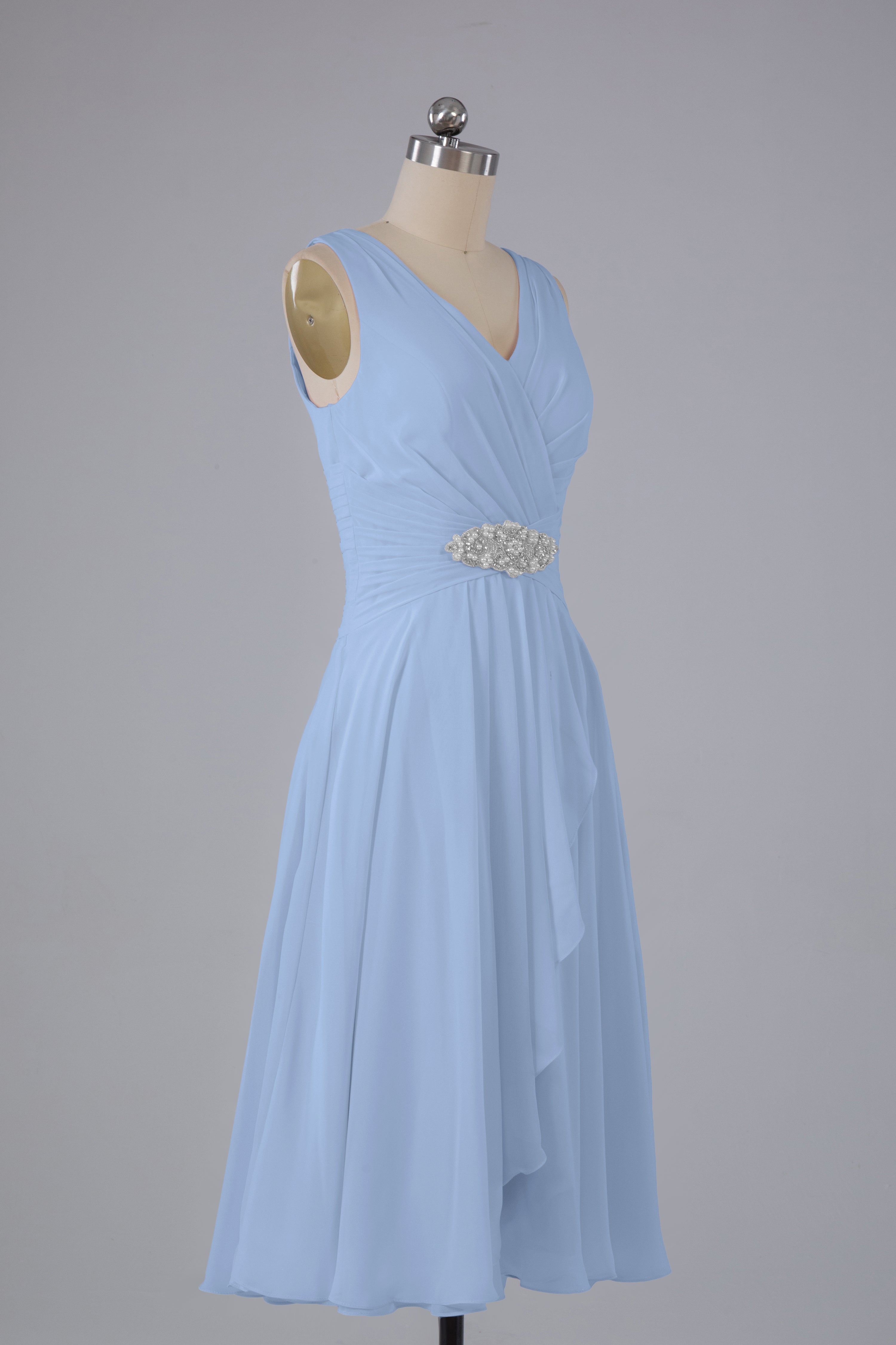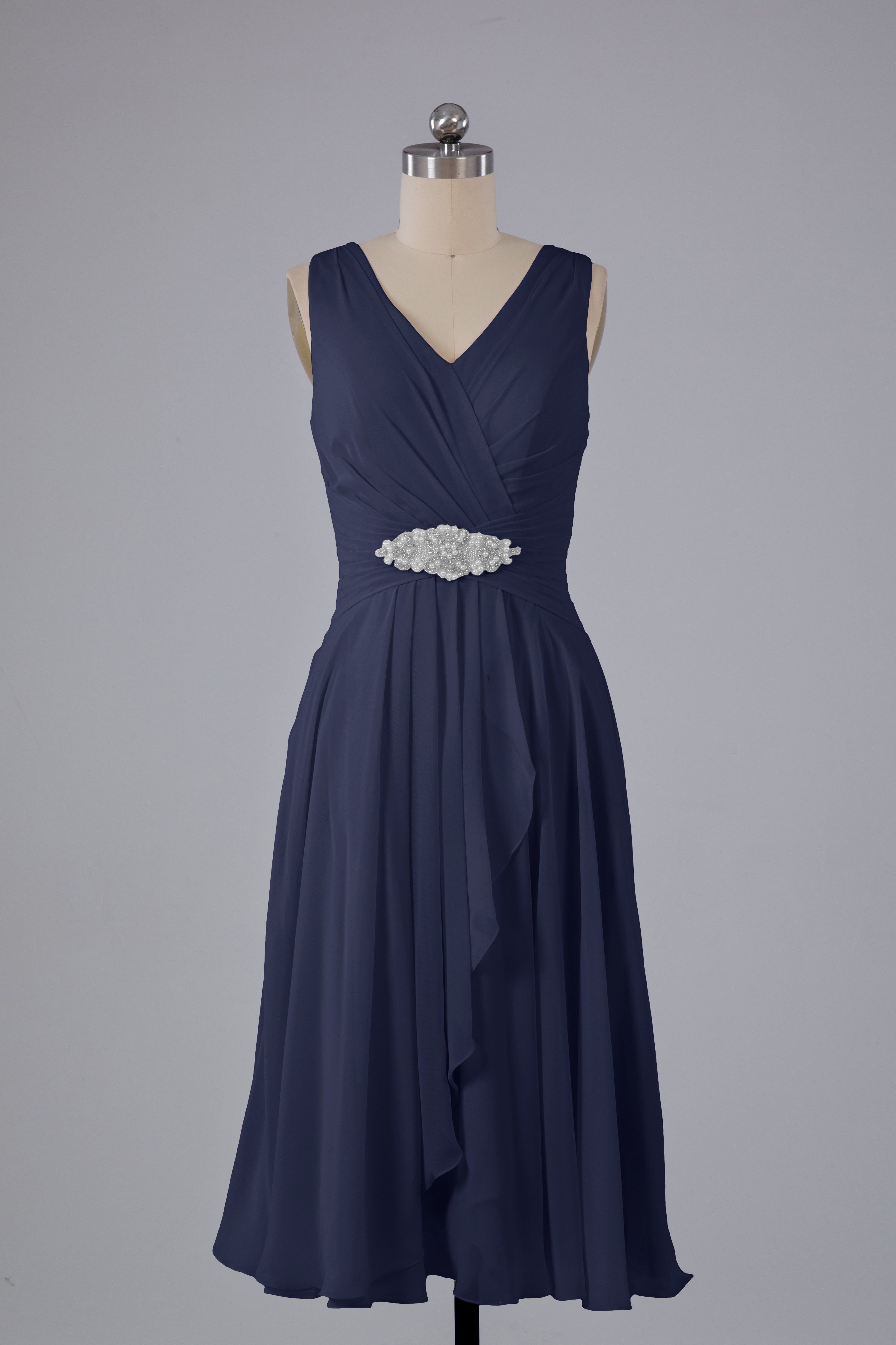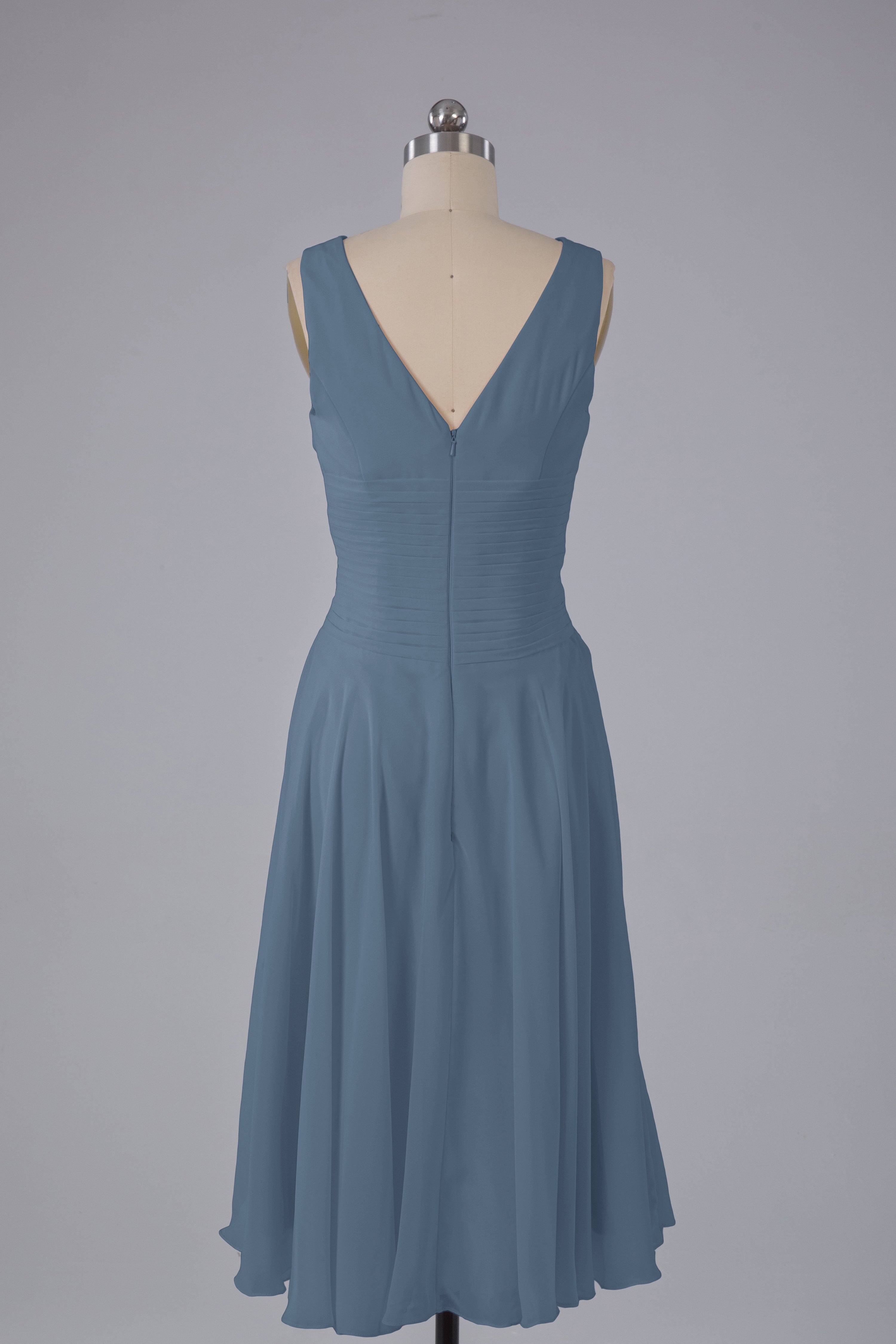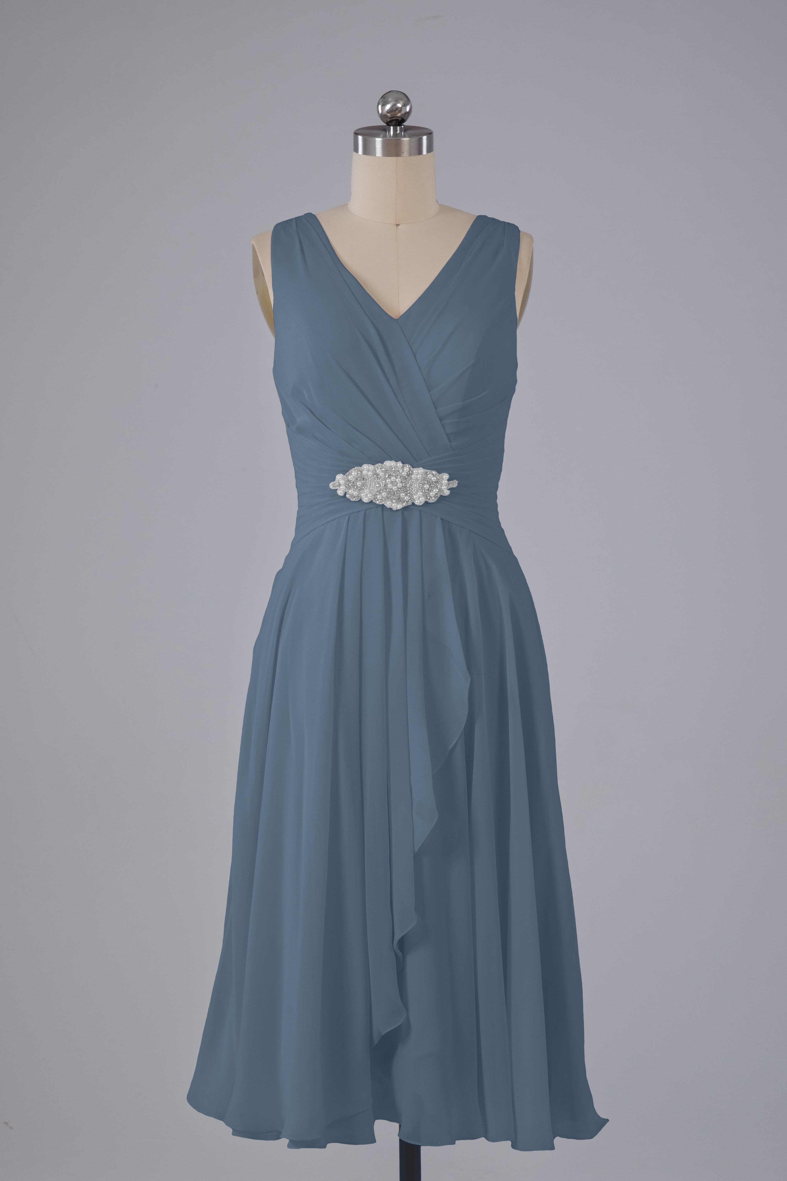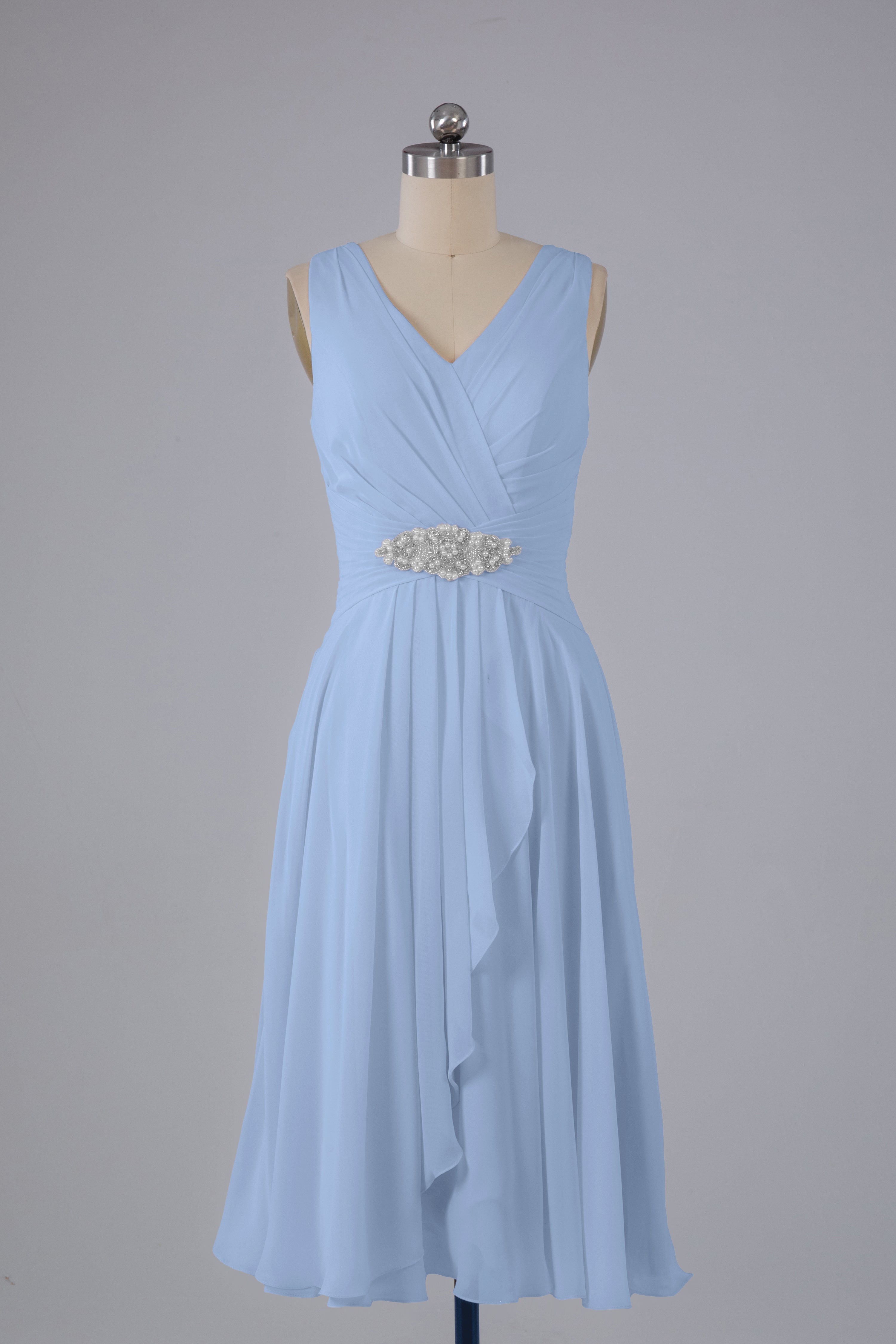Simple V Neck Knee Length Bridesmaid Dresses with Pearls