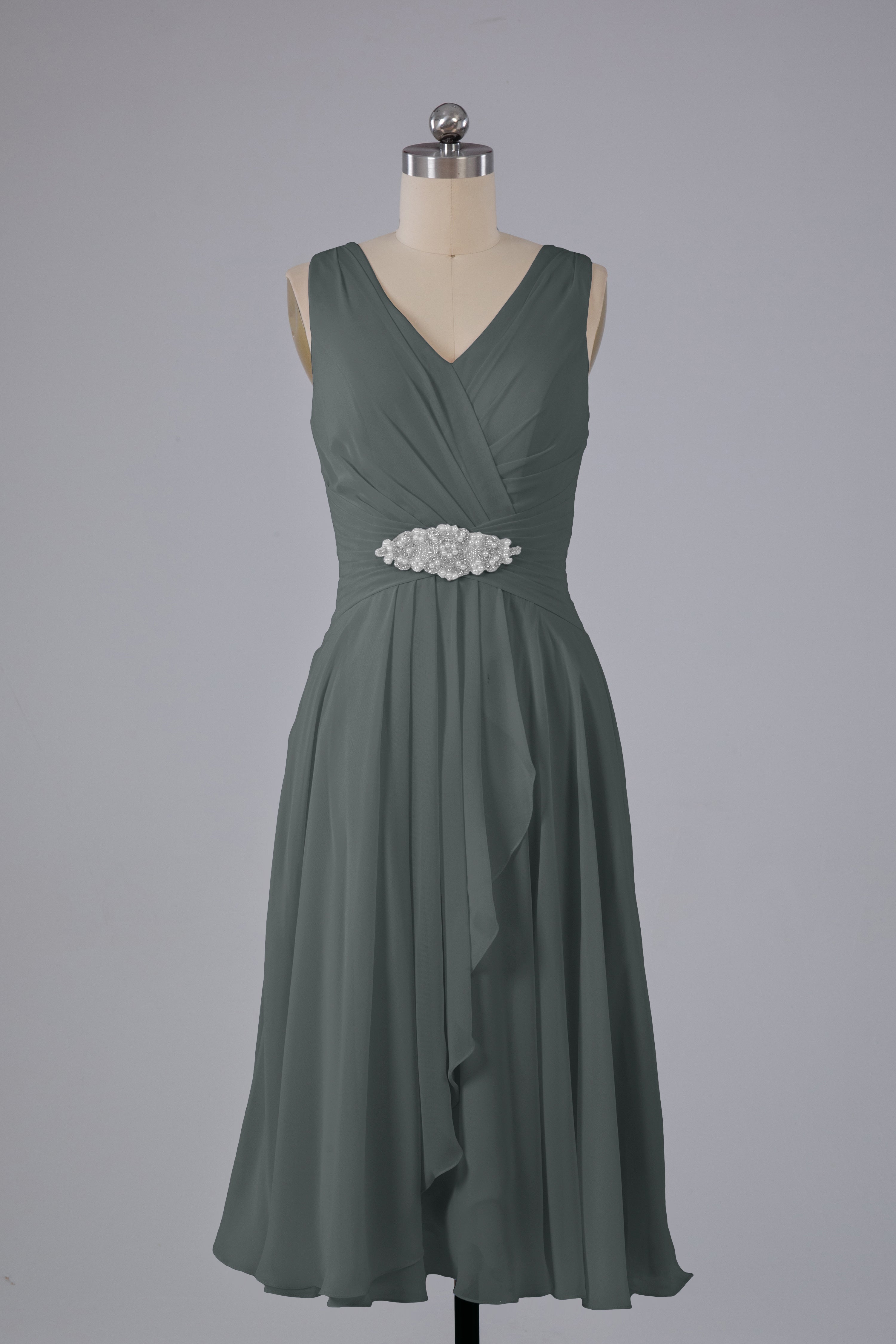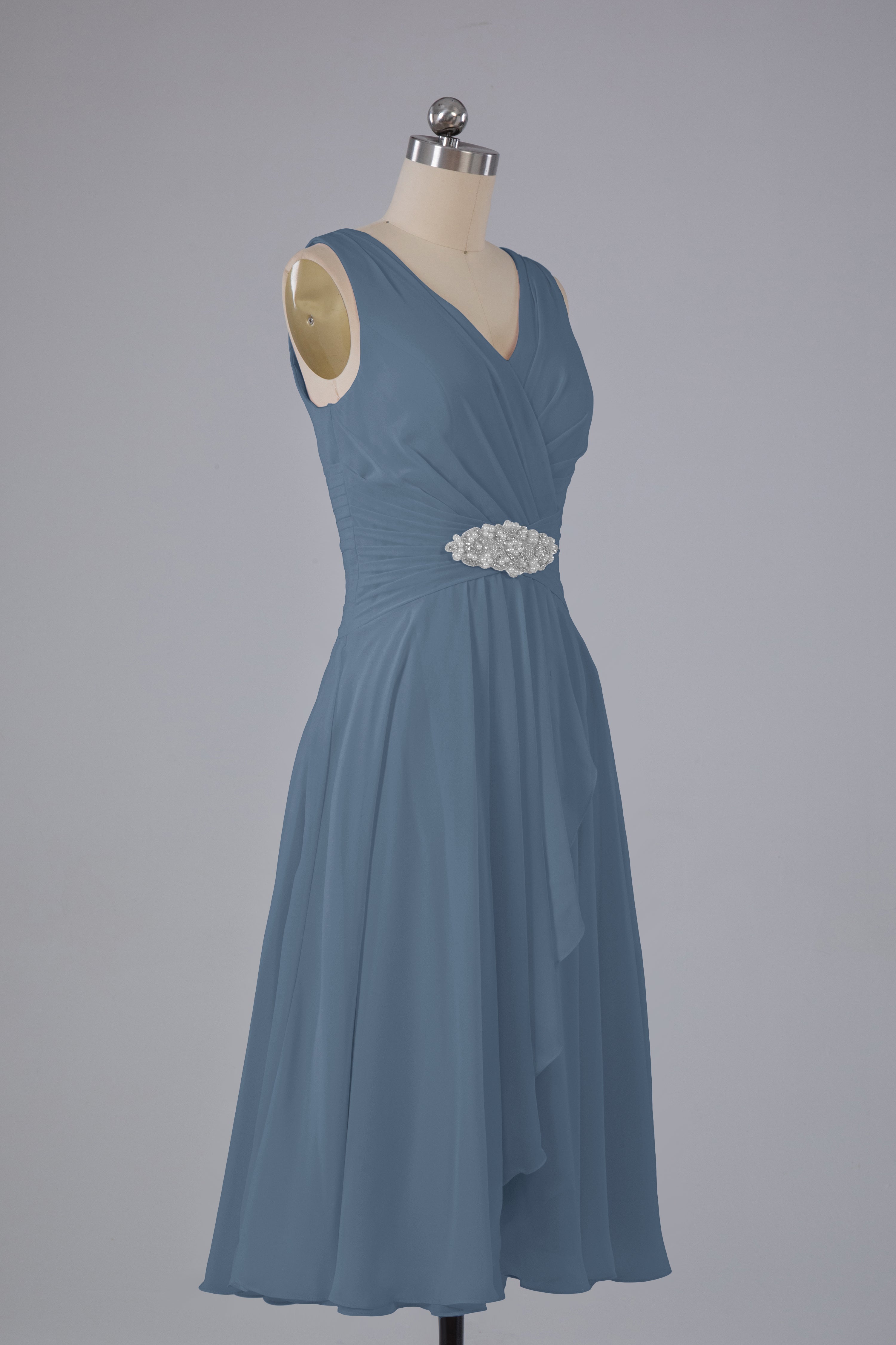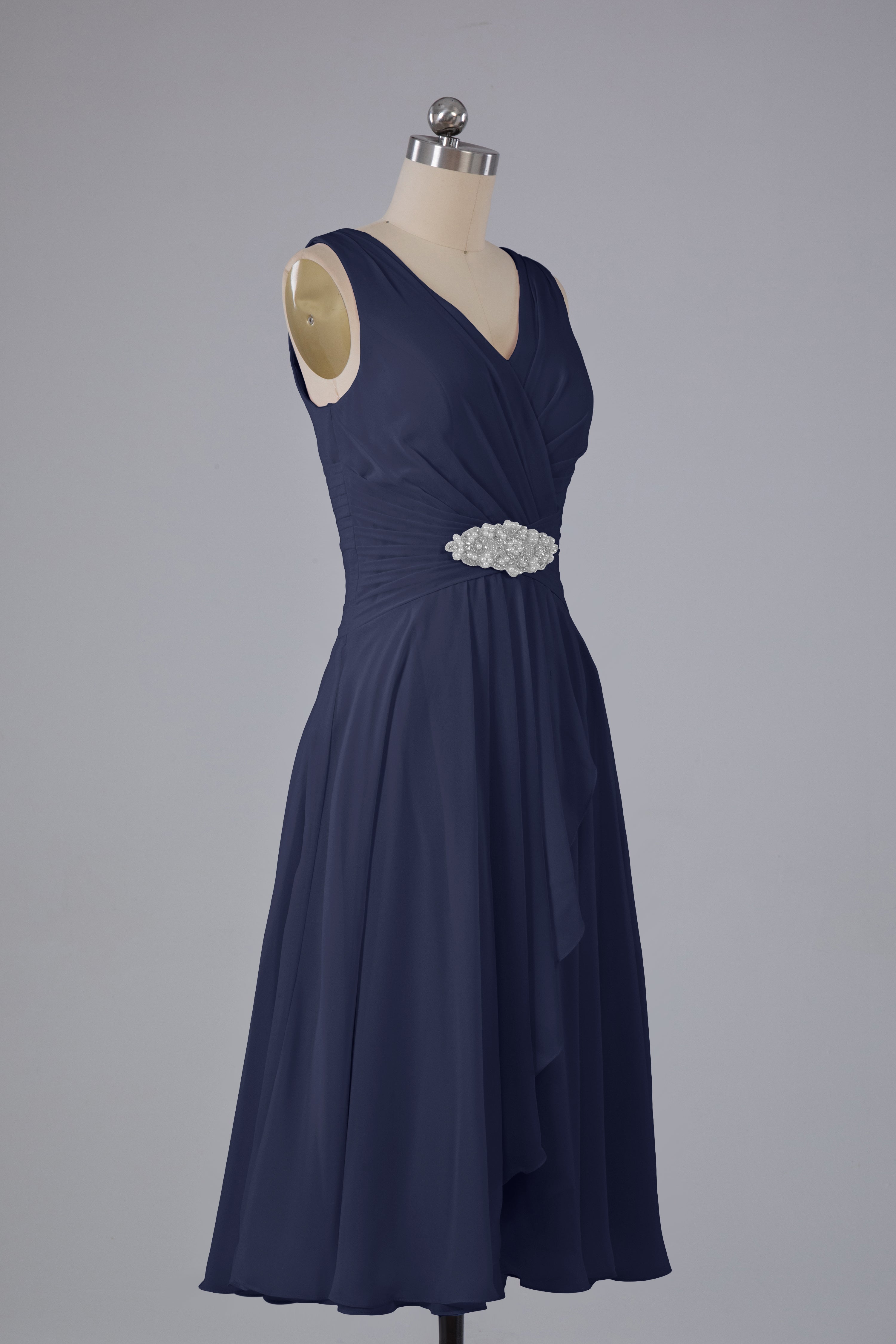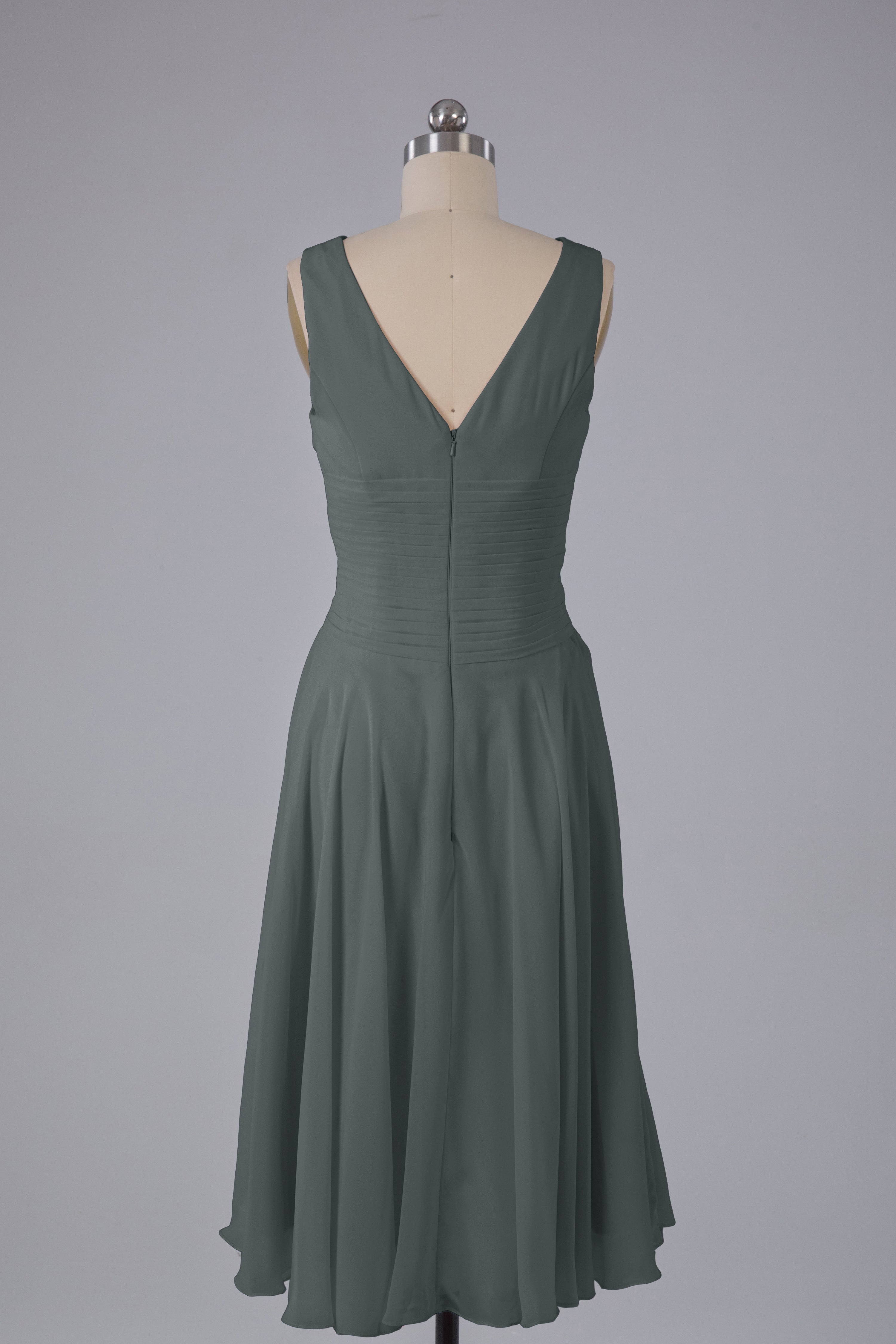Simple V Neck Knee Length Bridesmaid Dresses with Pearls