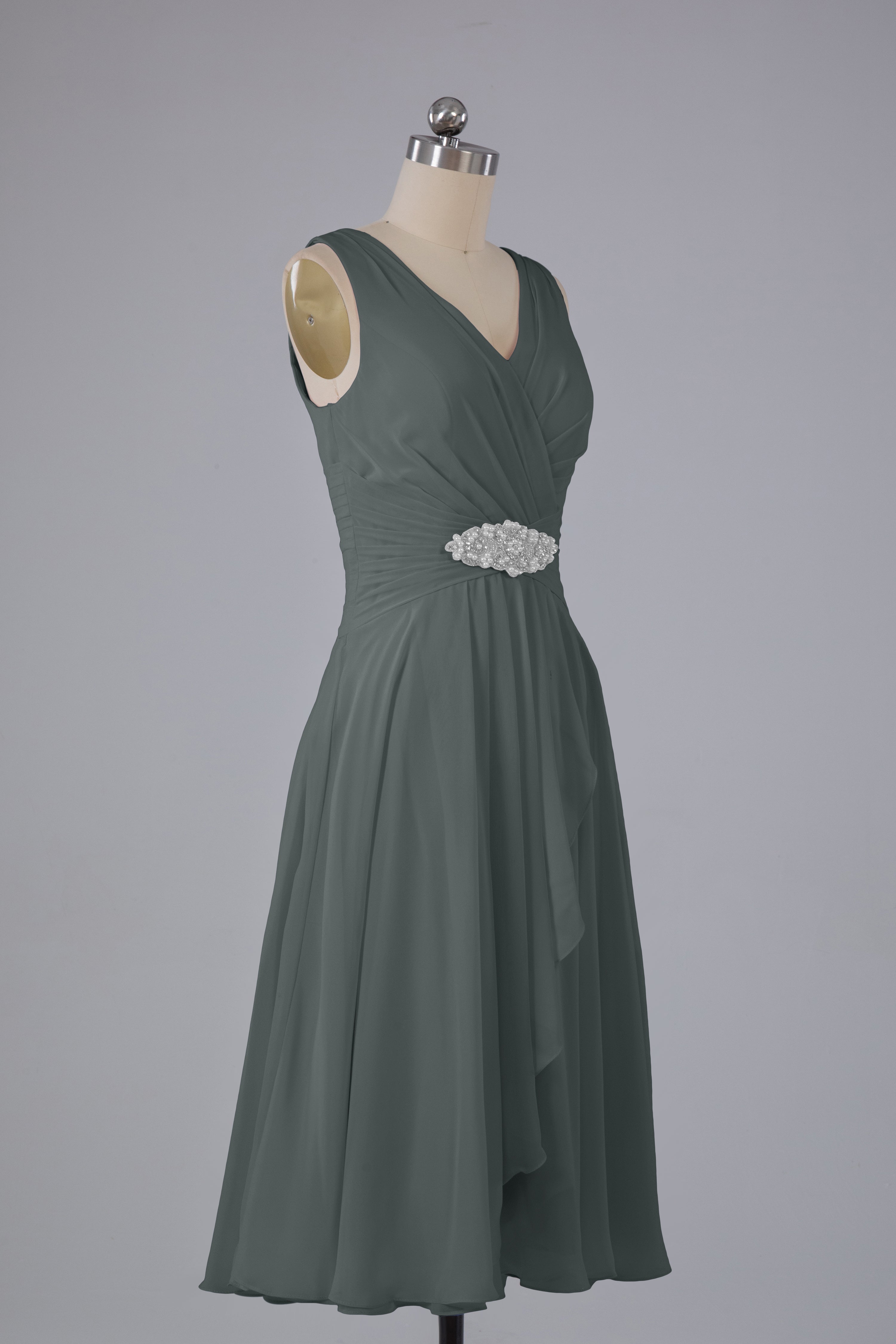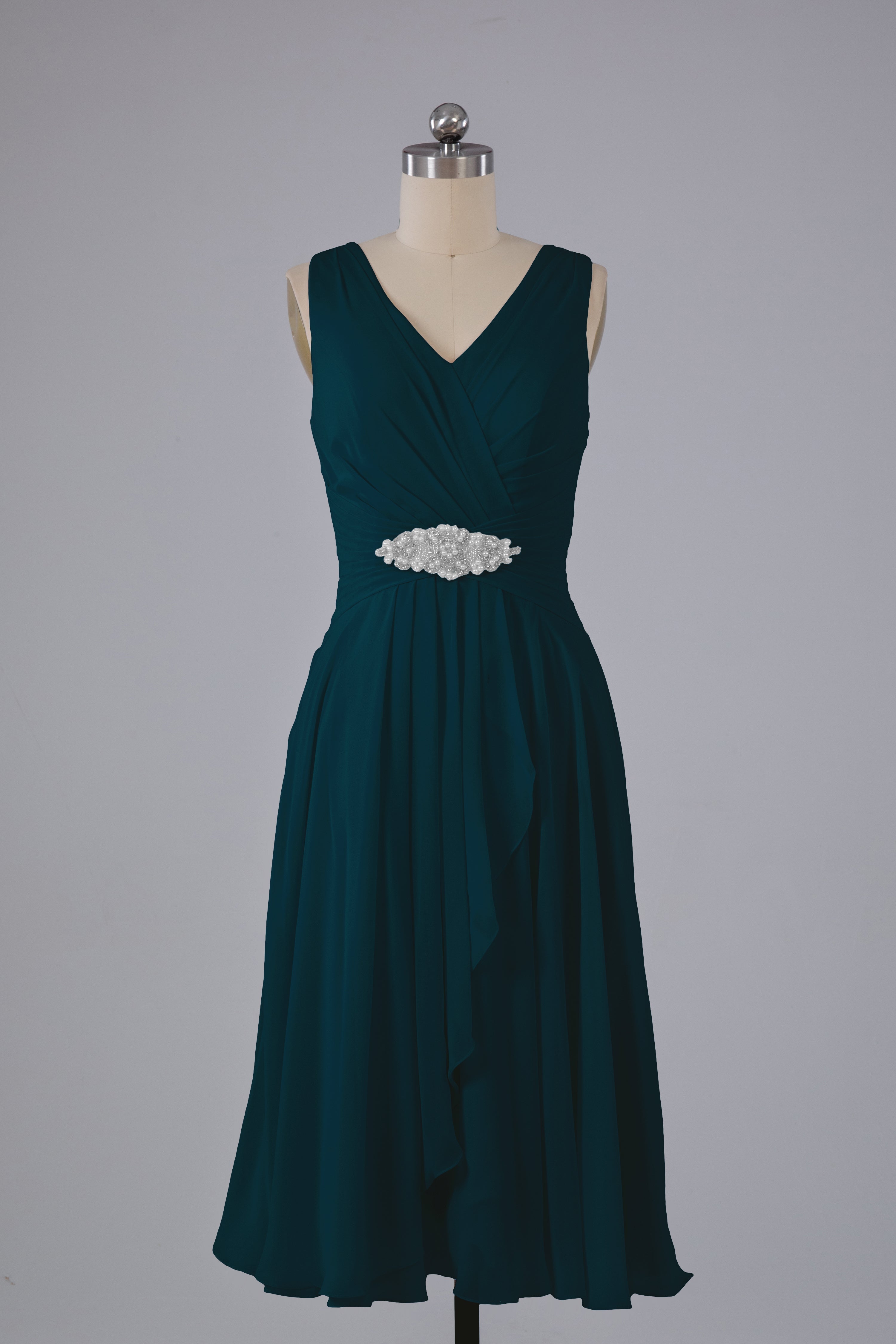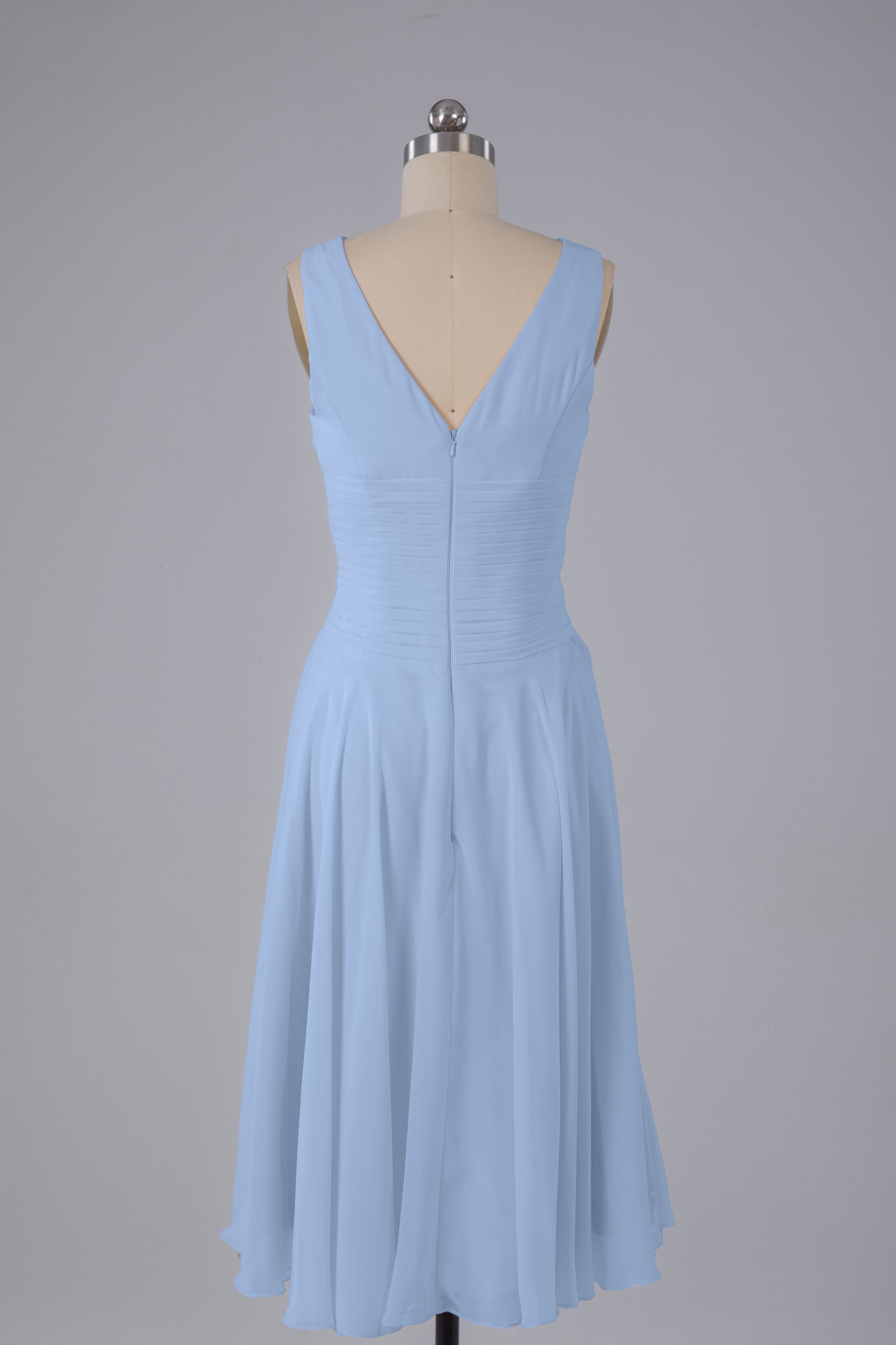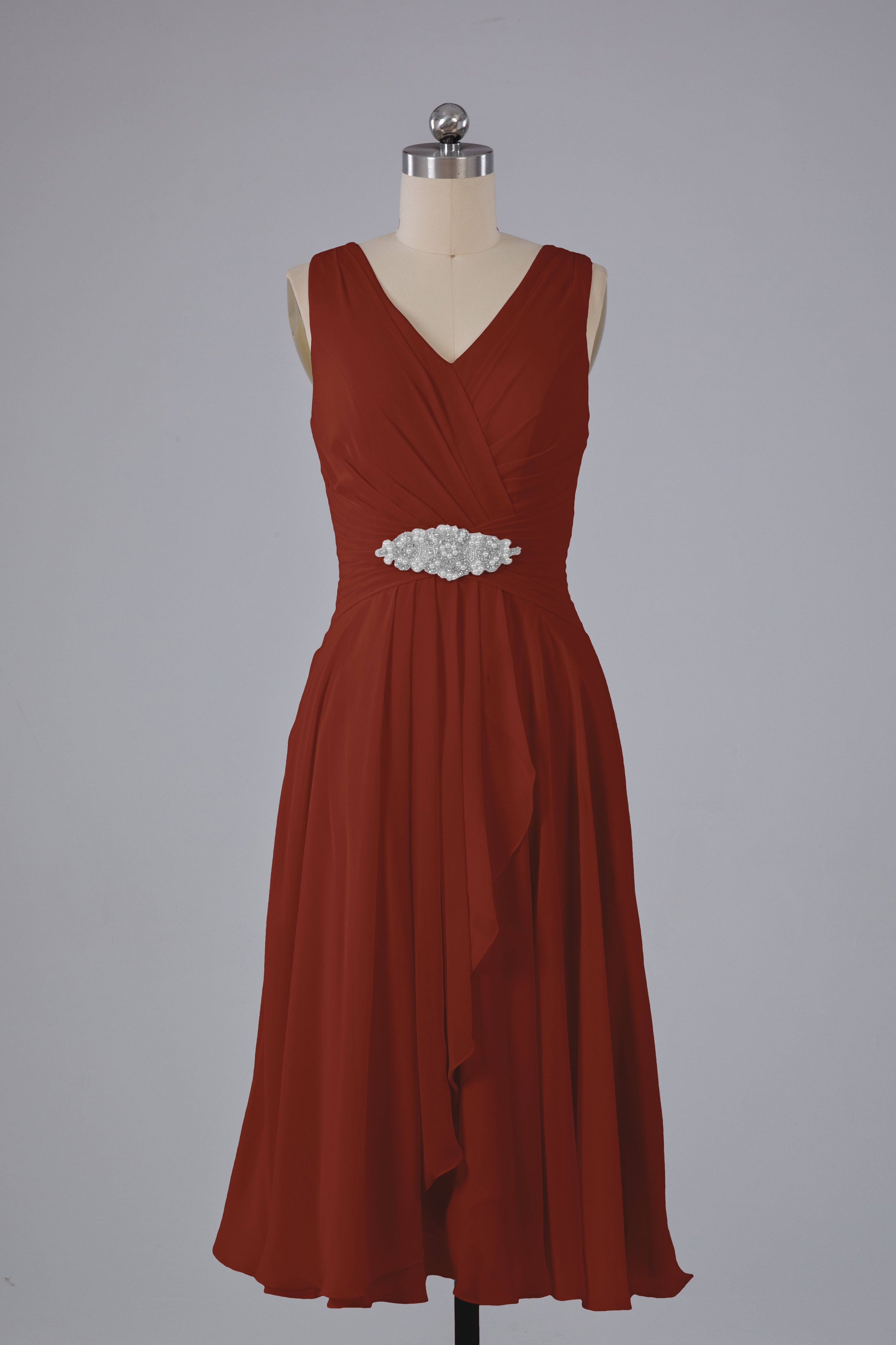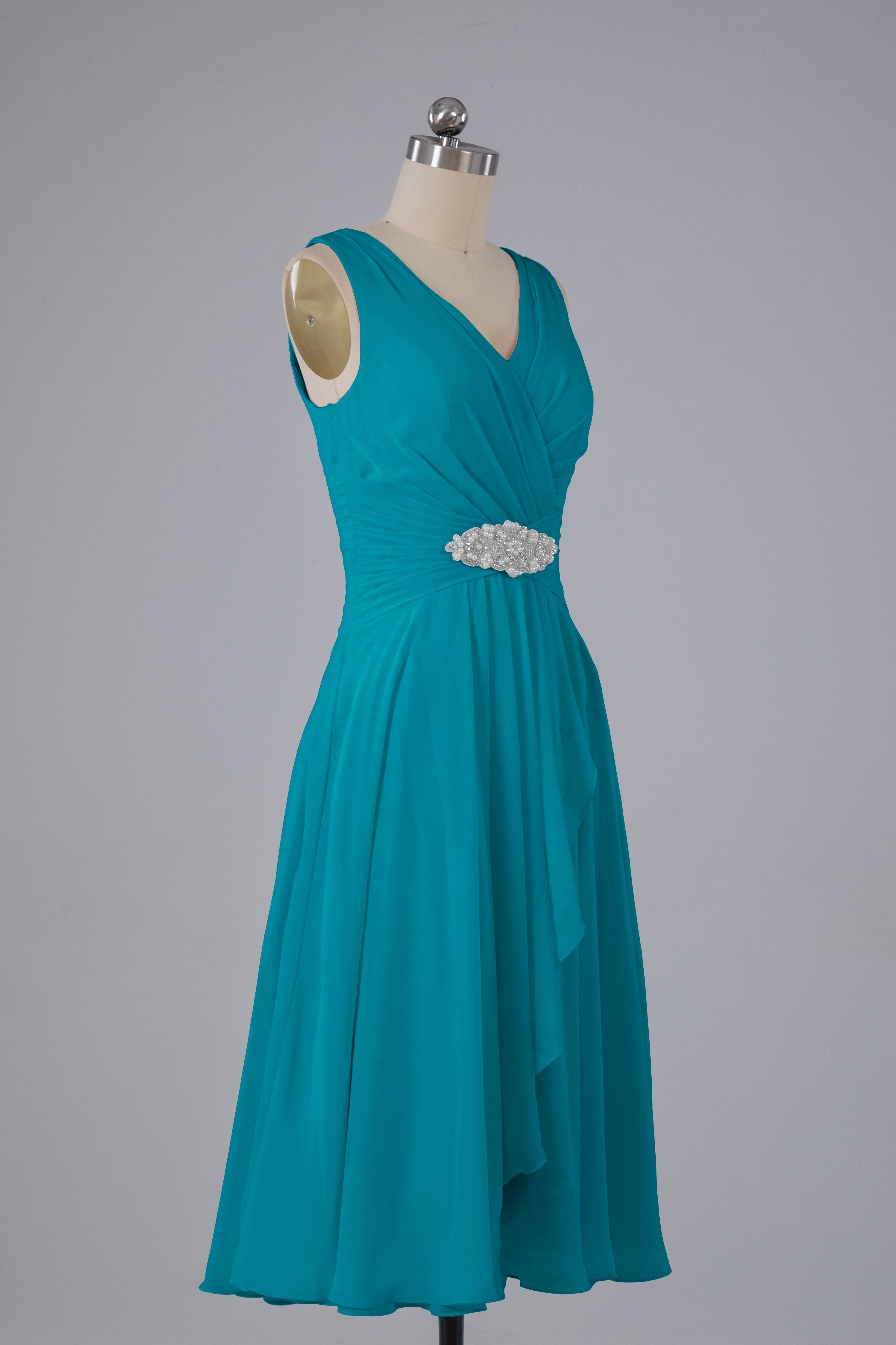 Simple V Neck Knee Length Bridesmaid Dresses with Pearls