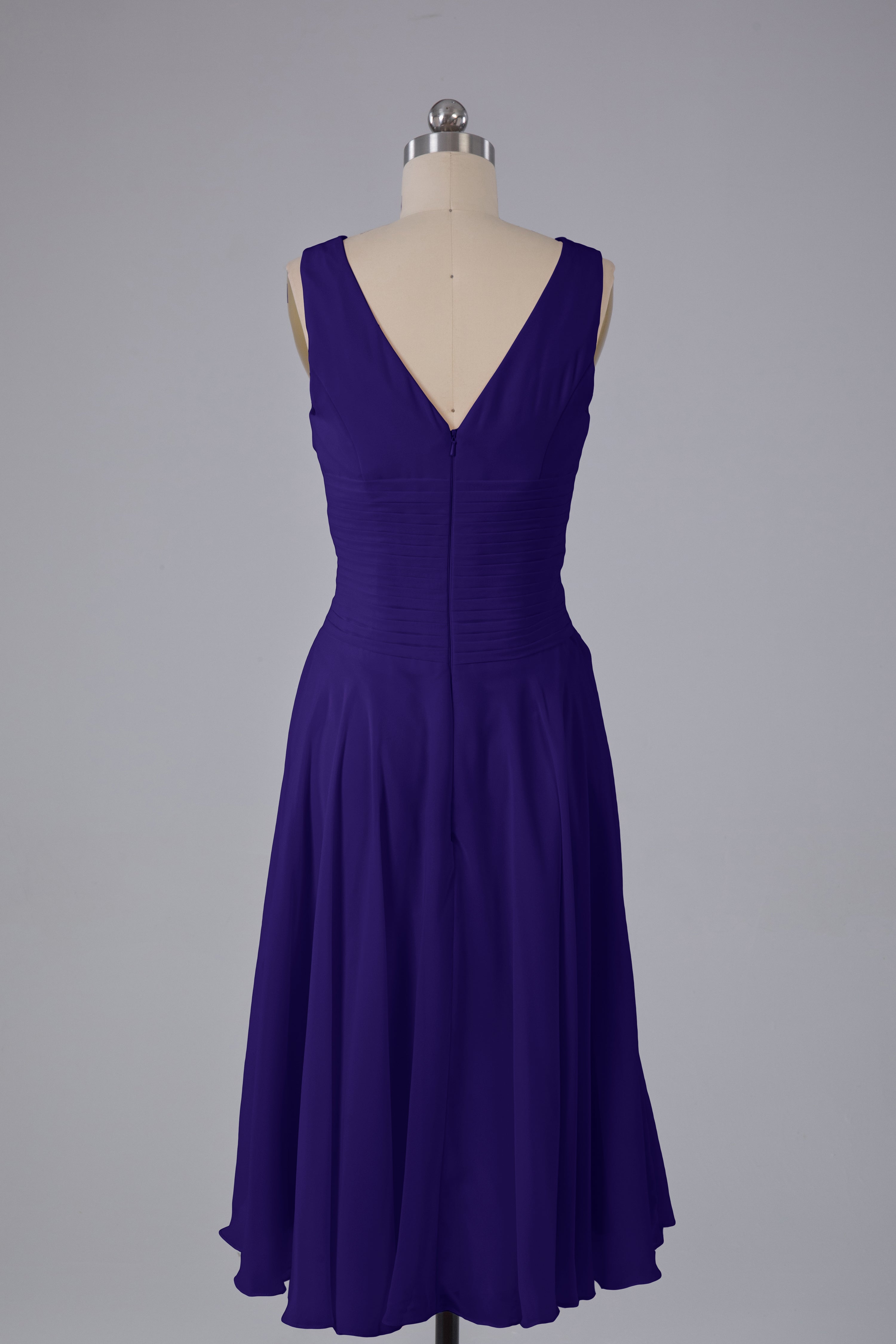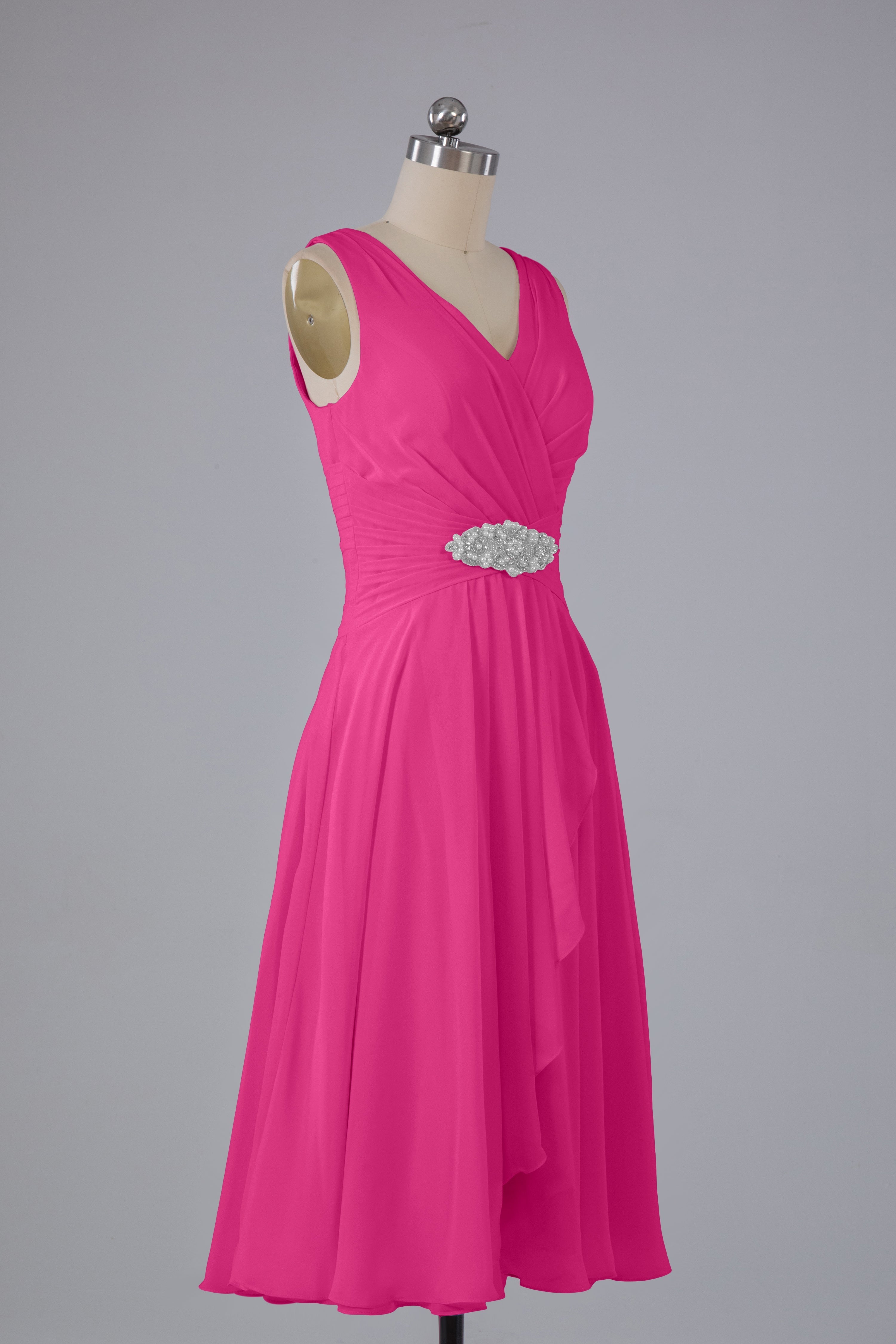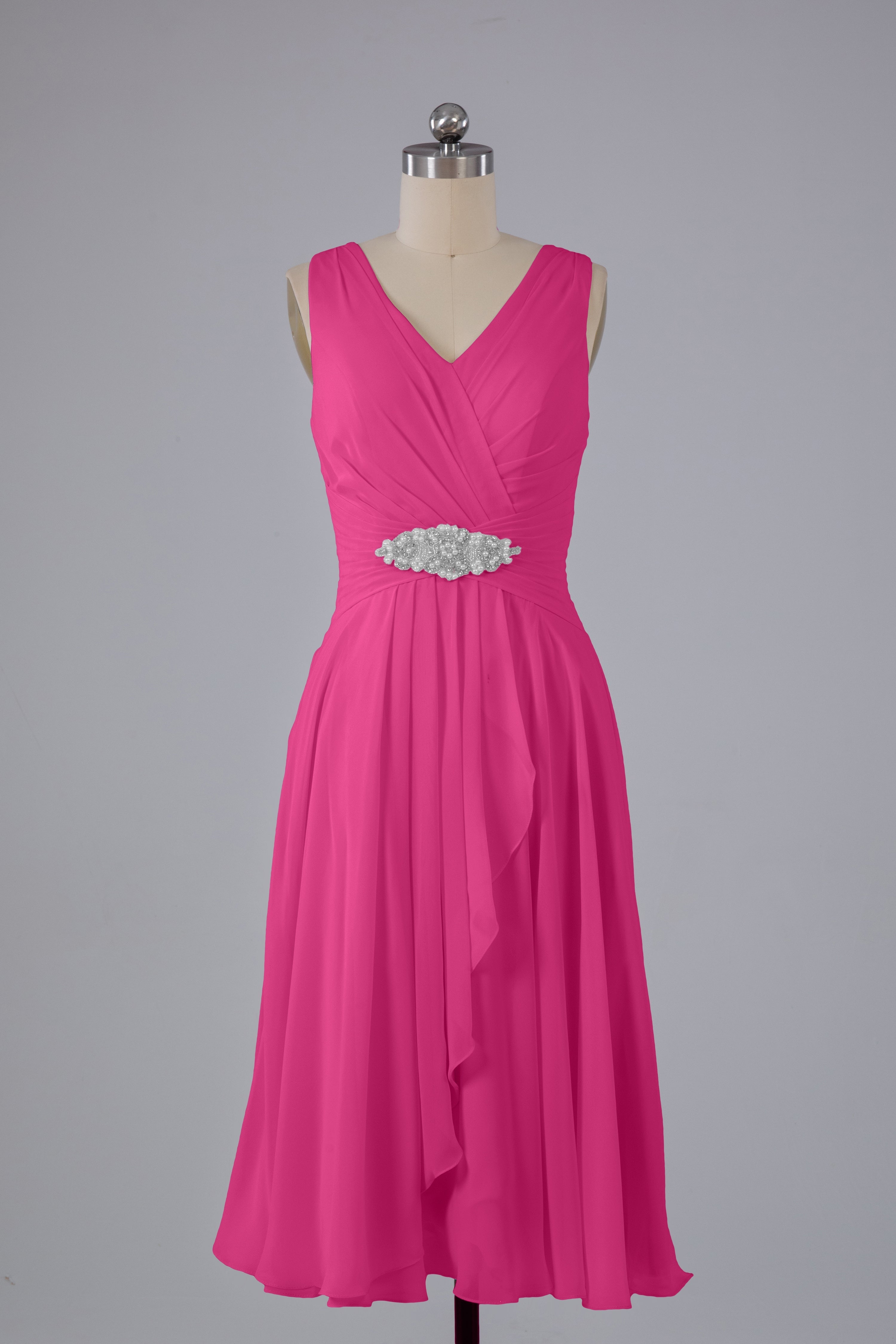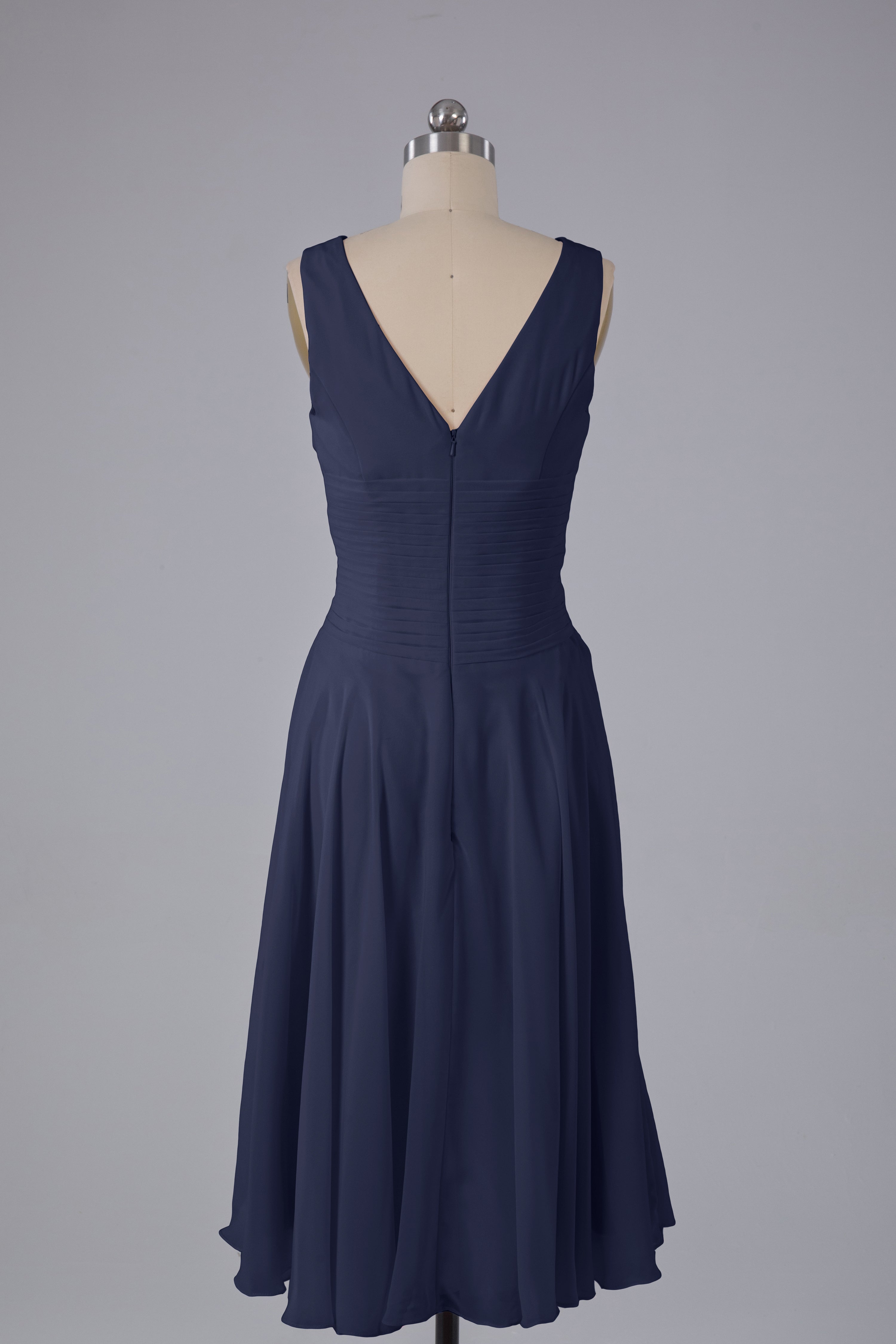 Simple V Neck Knee Length Bridesmaid Dresses with Pearls
