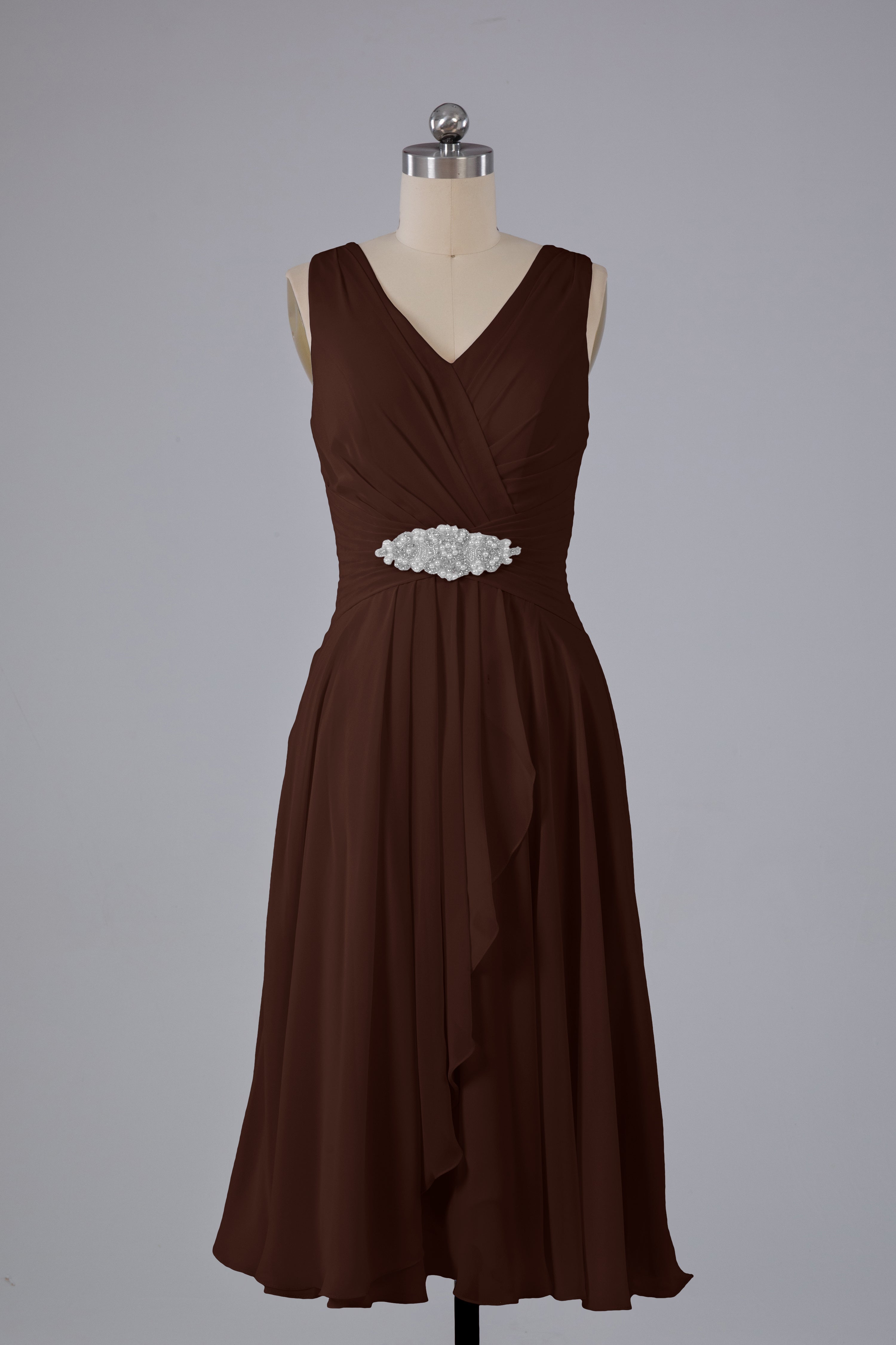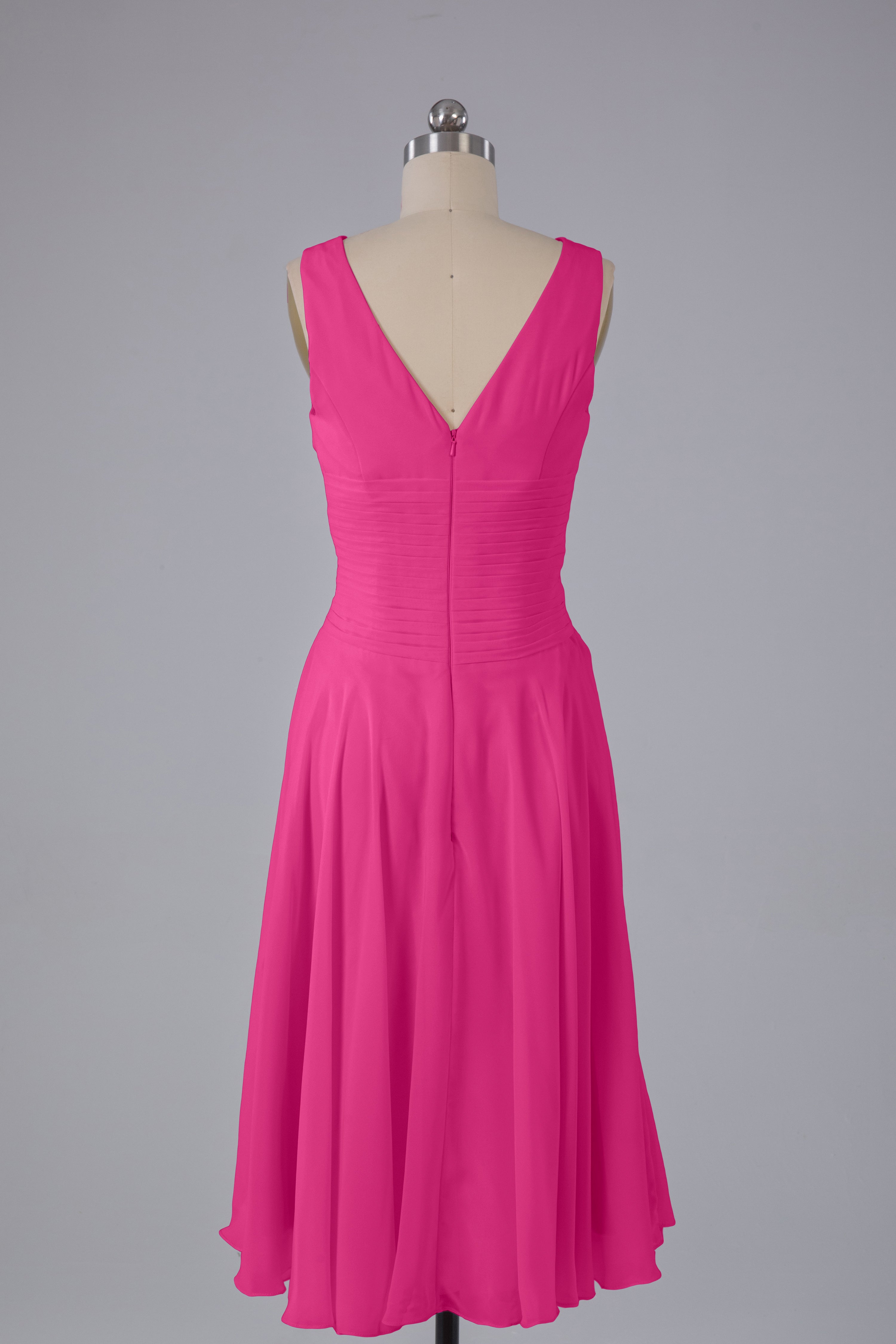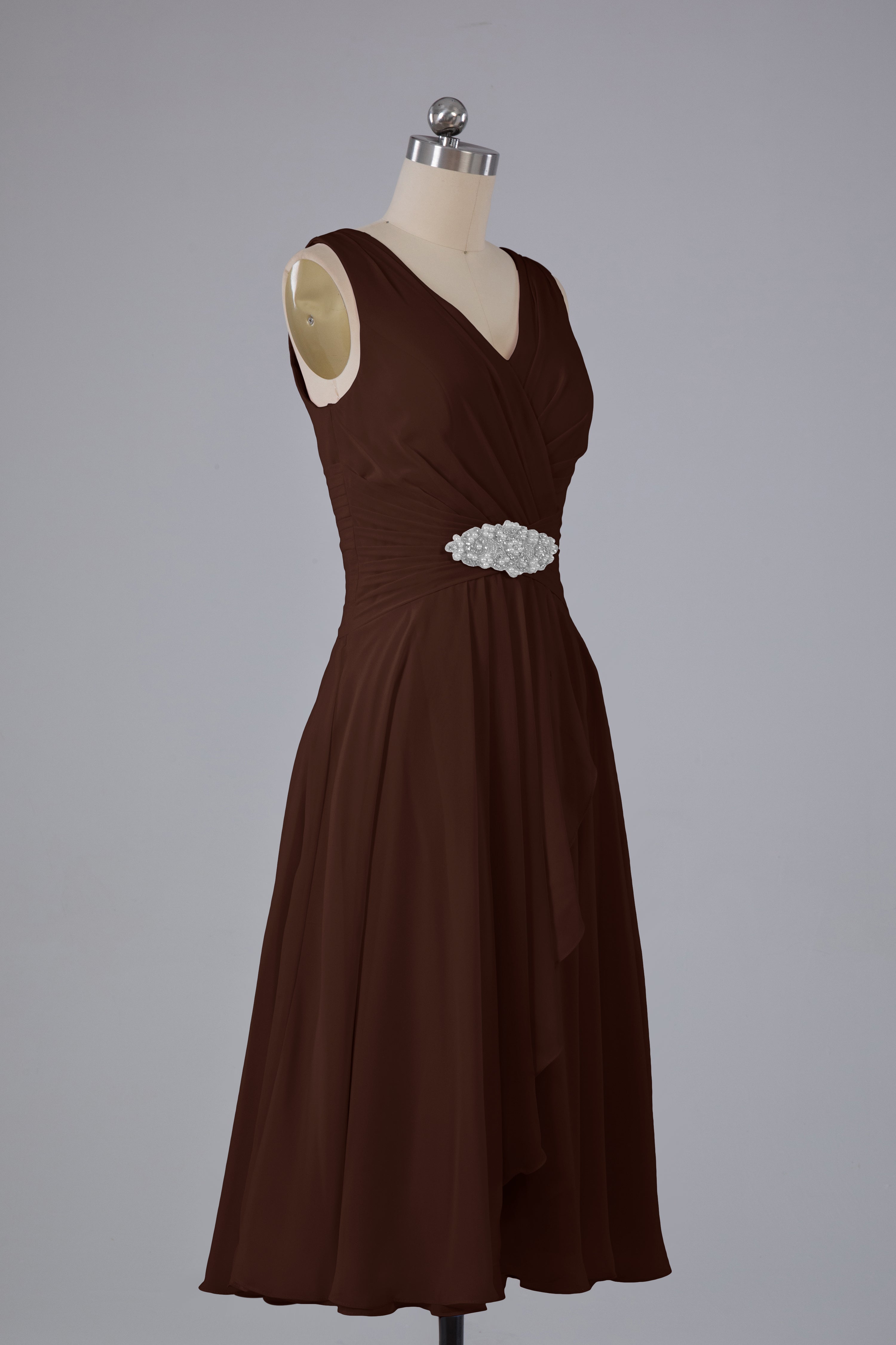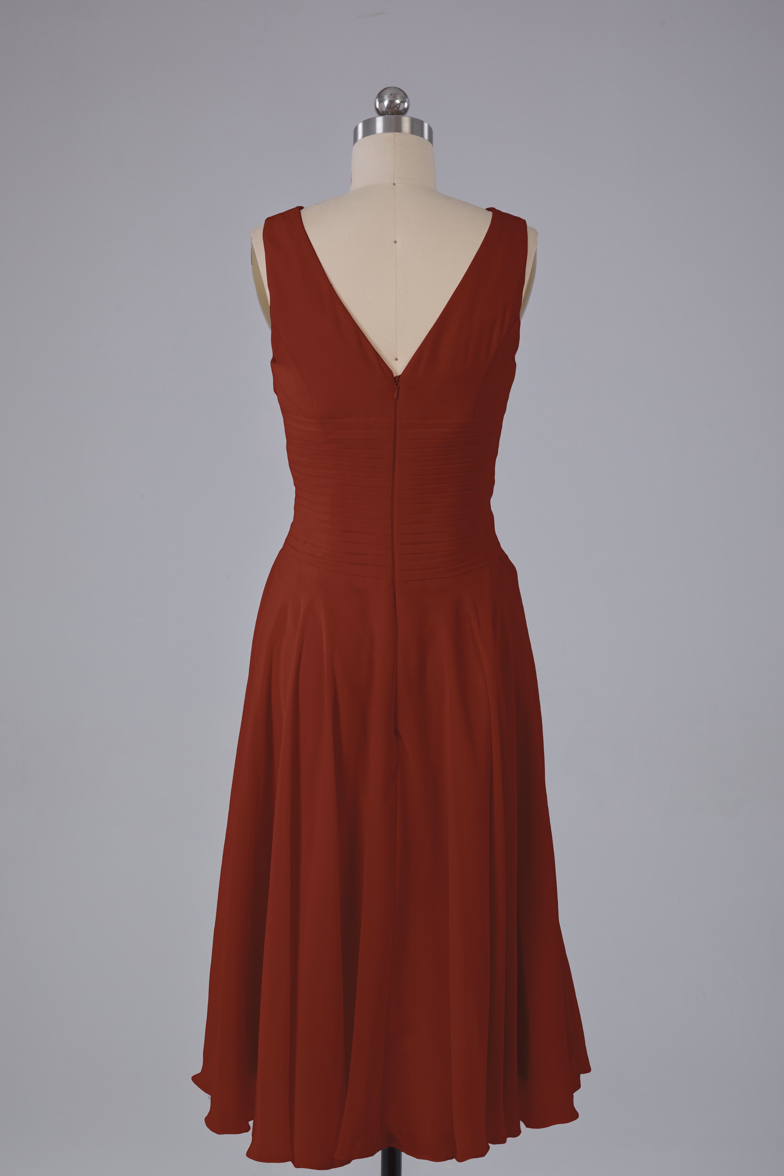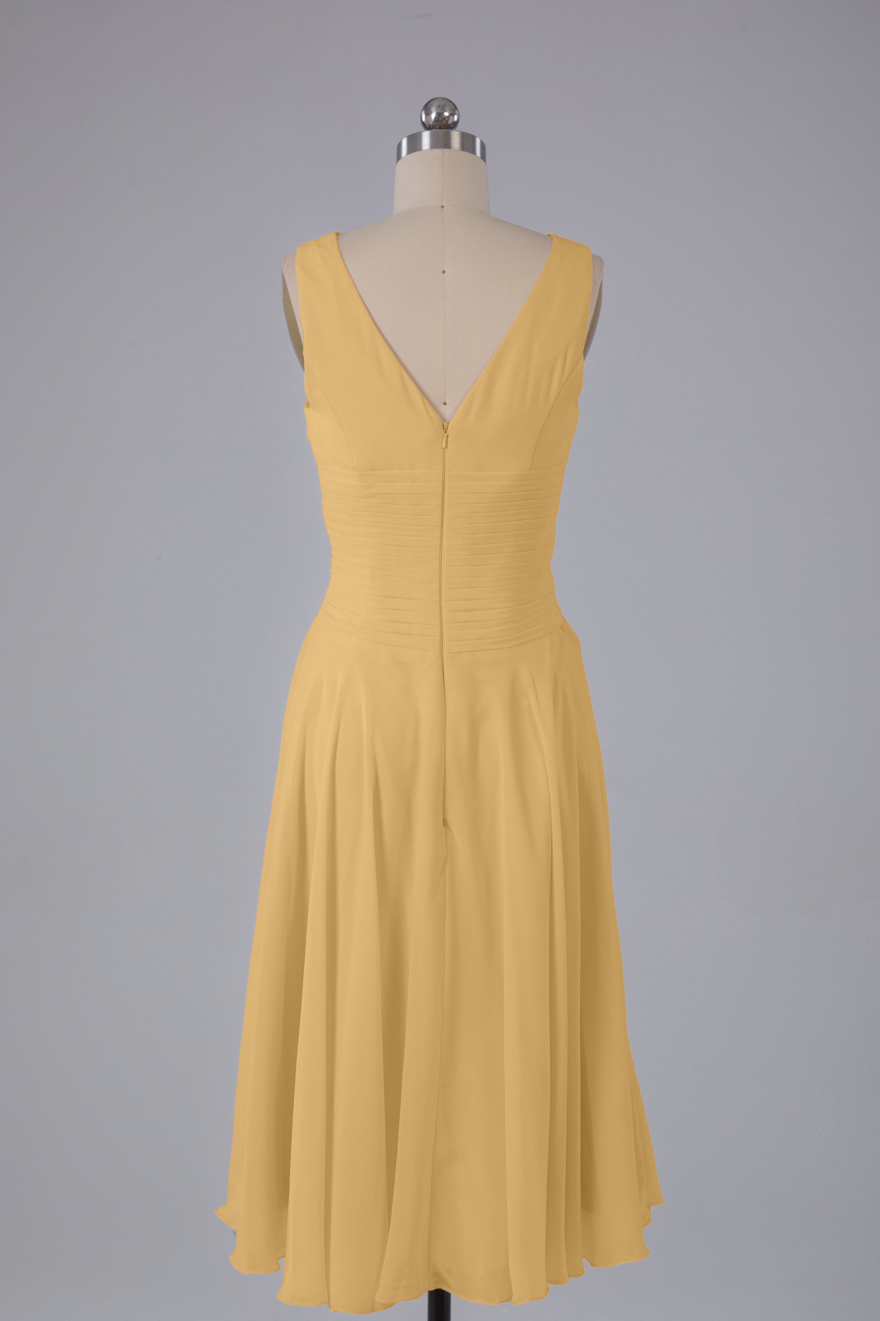Simple V Neck Knee Length Bridesmaid Dresses with Pearls
