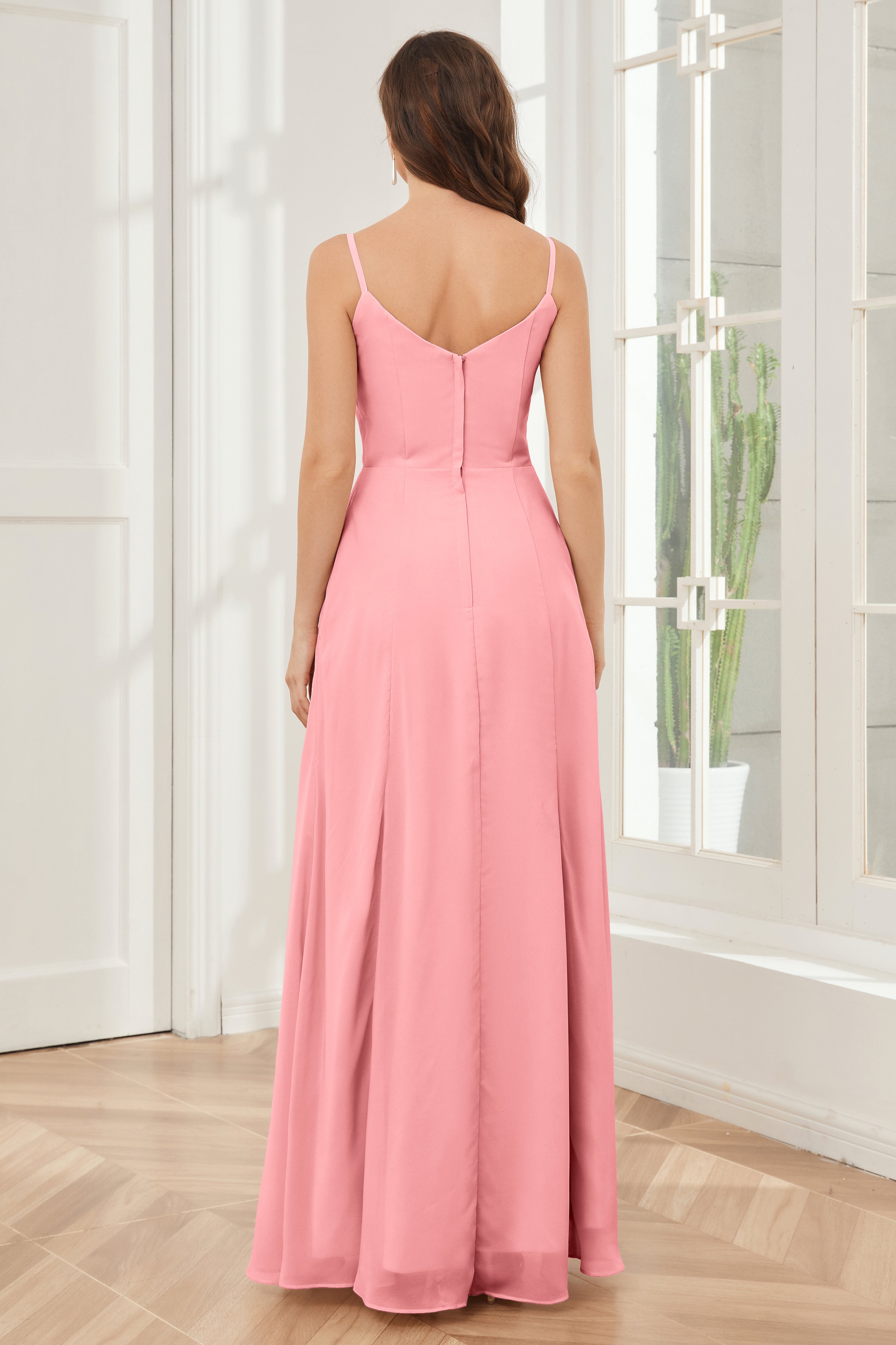 Spaghetti Straps Chiffon Long Bridesmaid Dresses with Slit